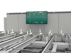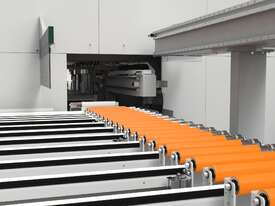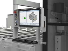 Fitted with a large onboard saw cutoff system that auto tilts by the software commands, fixed 90 degree cuts through to angled cutting is simplified and efficient.