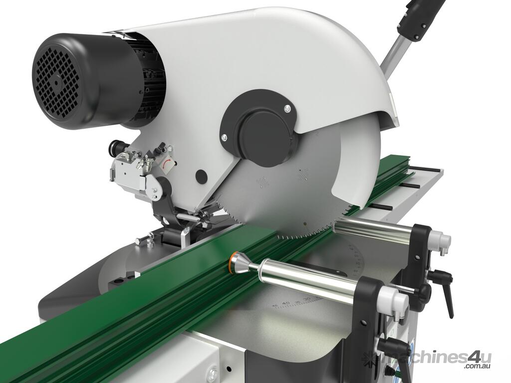 2.2kW motor with 400m diameter blade that both tilts and rotates to allow compound angle cuts.