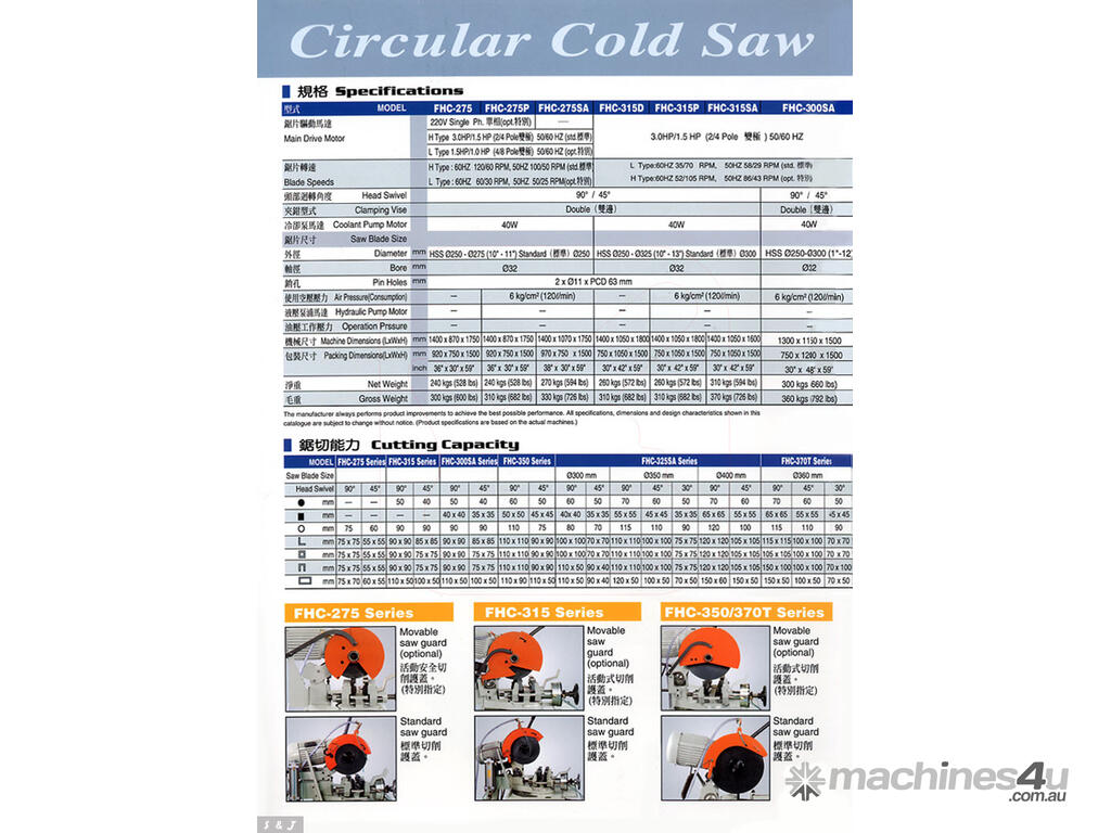 * The manufacturer always performs product improvements to achieve the best possible performance. All specifications, dimensions and design characteristics shown in this catalogue are subject to change without notice. ( Product specifications are based on the actual machines. )