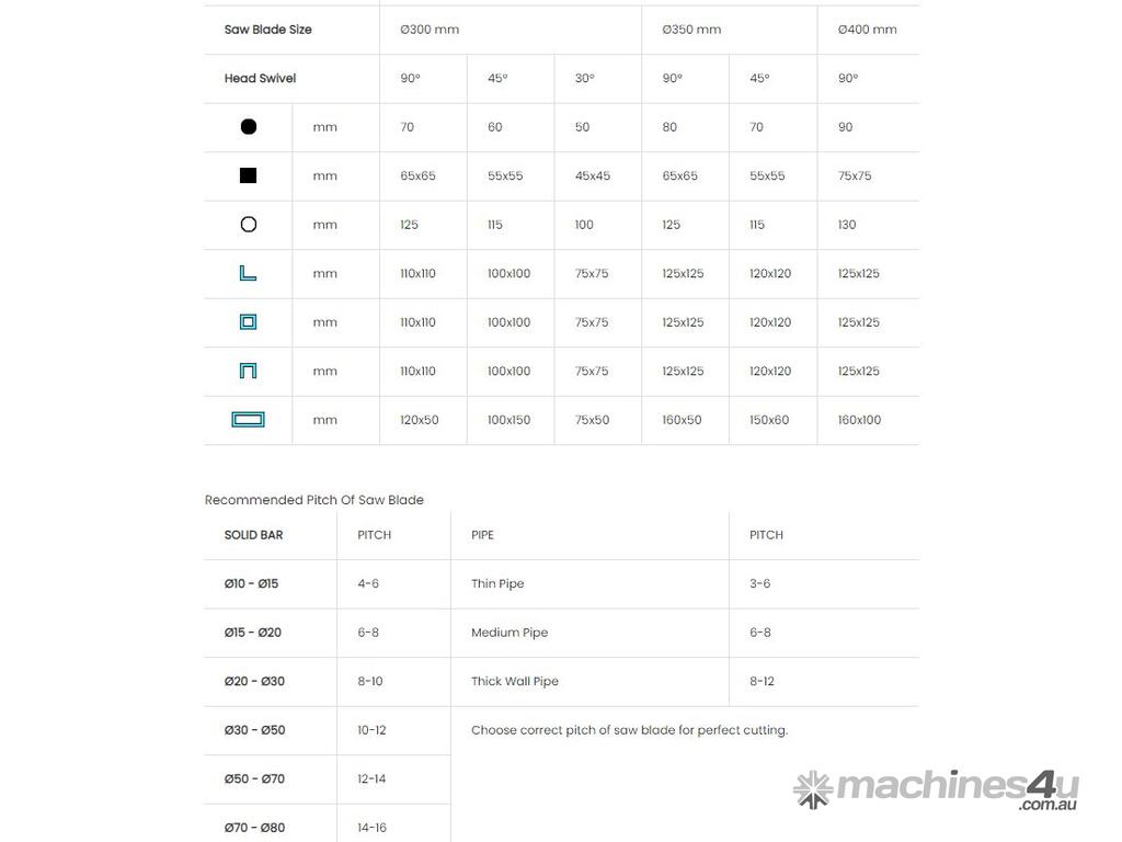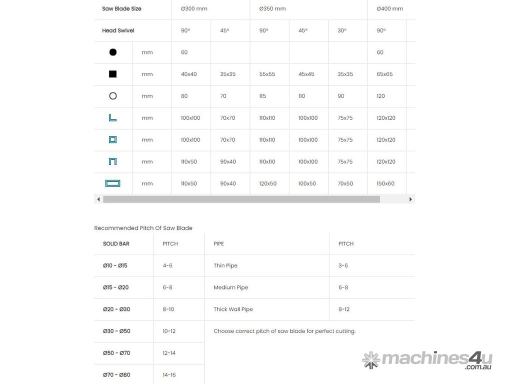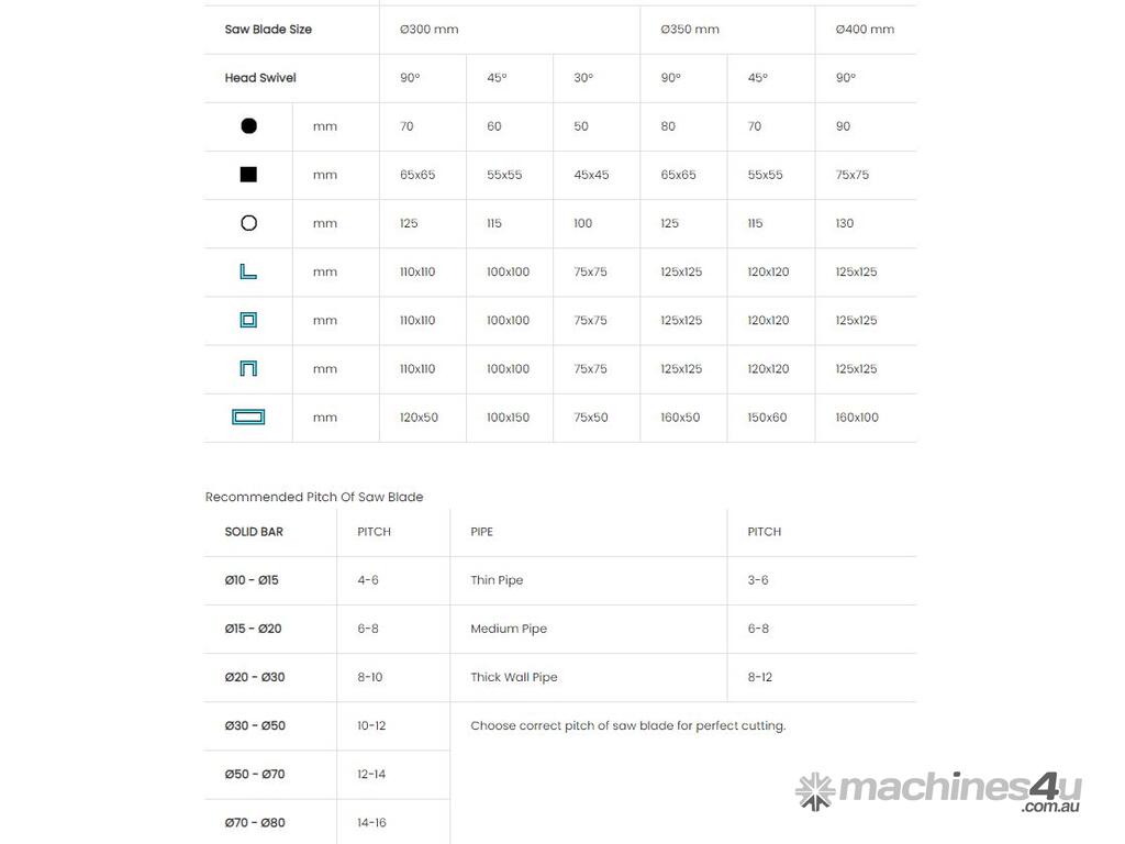 Saw Blade Size Diameter (mm) HSS Ø250-Ø350(10"-14") Standard Ø350