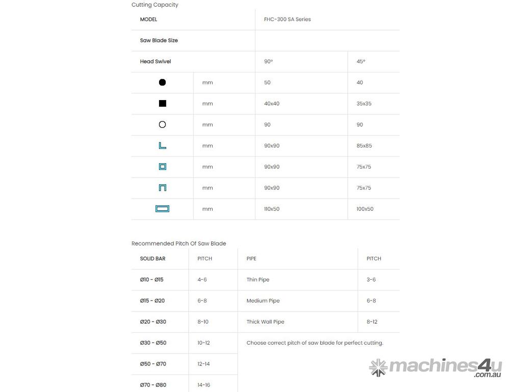 Saw Blade Size	Diameter (mm)	HSS 50-Ø300(1"-12")
