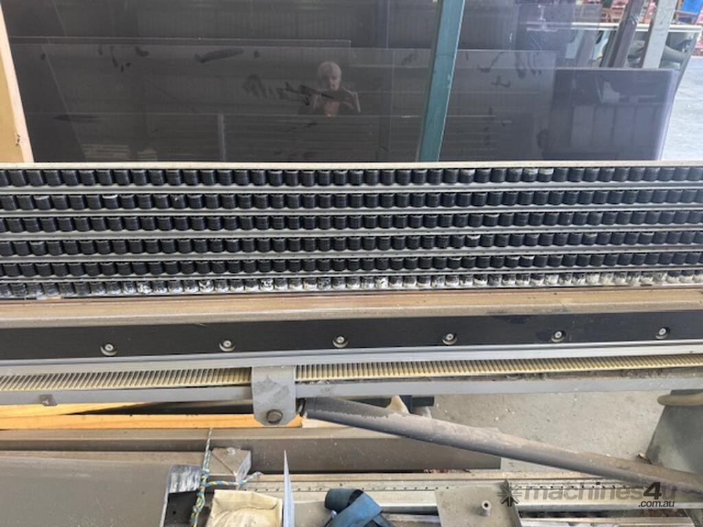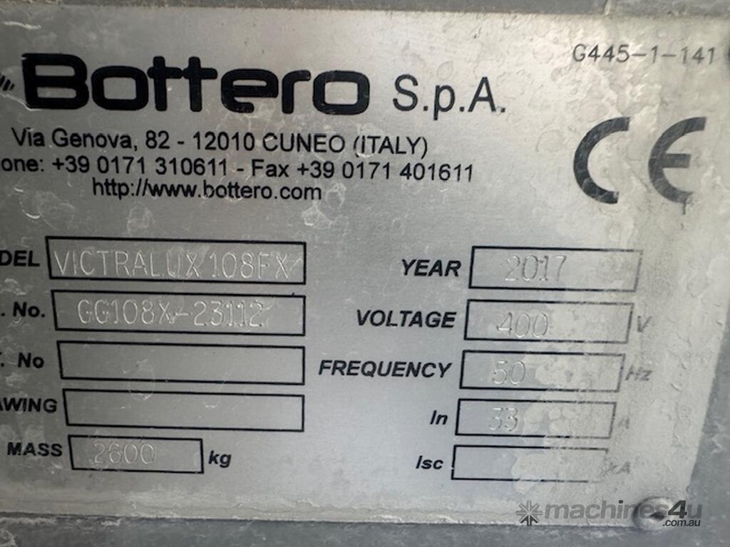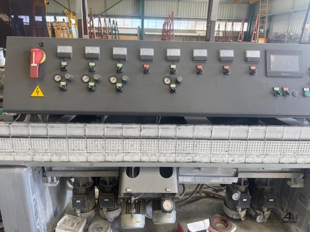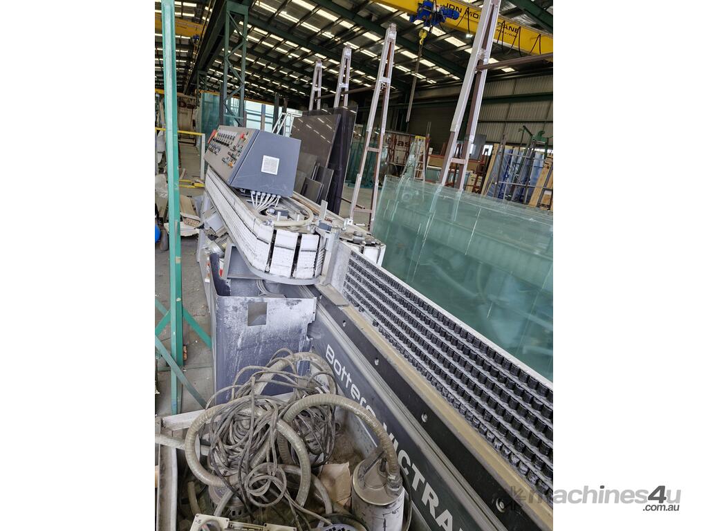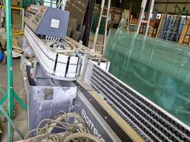 For Sale is a Bottero Victralux 180FX 2017 straight-line edging machine. This high-performance unit is used but in good condition, with consistent servicing. Ideal for glass shops seeking reliable flat edge polishing with arris.