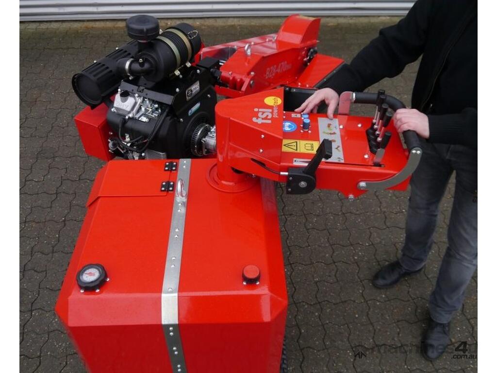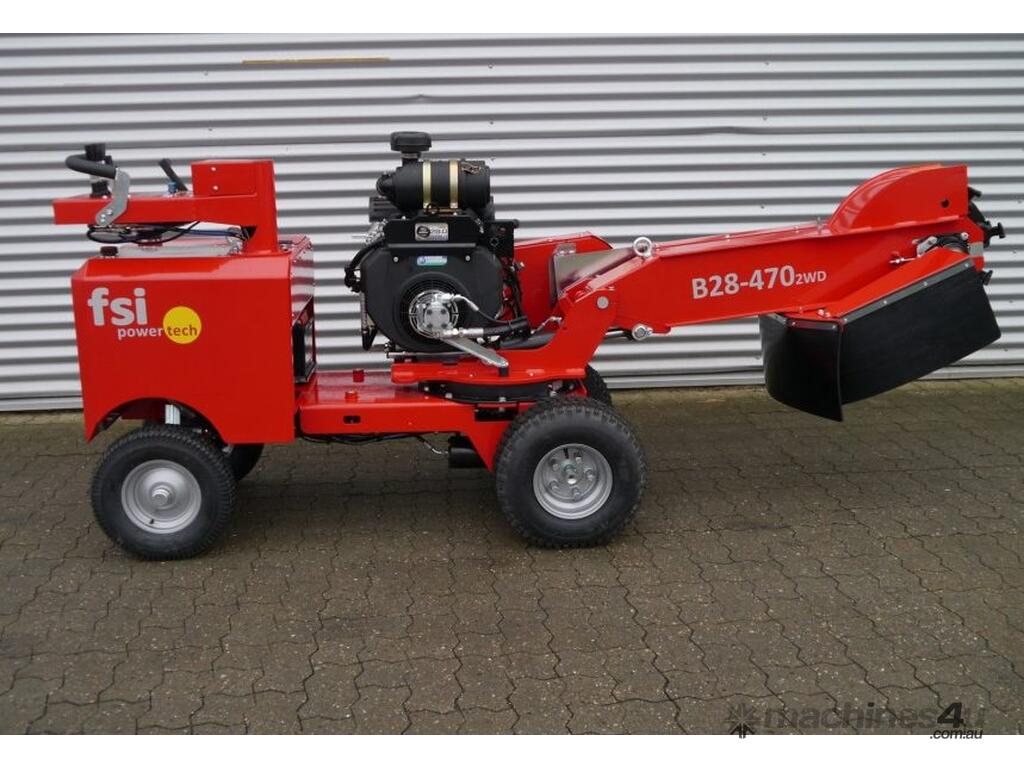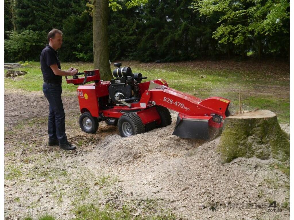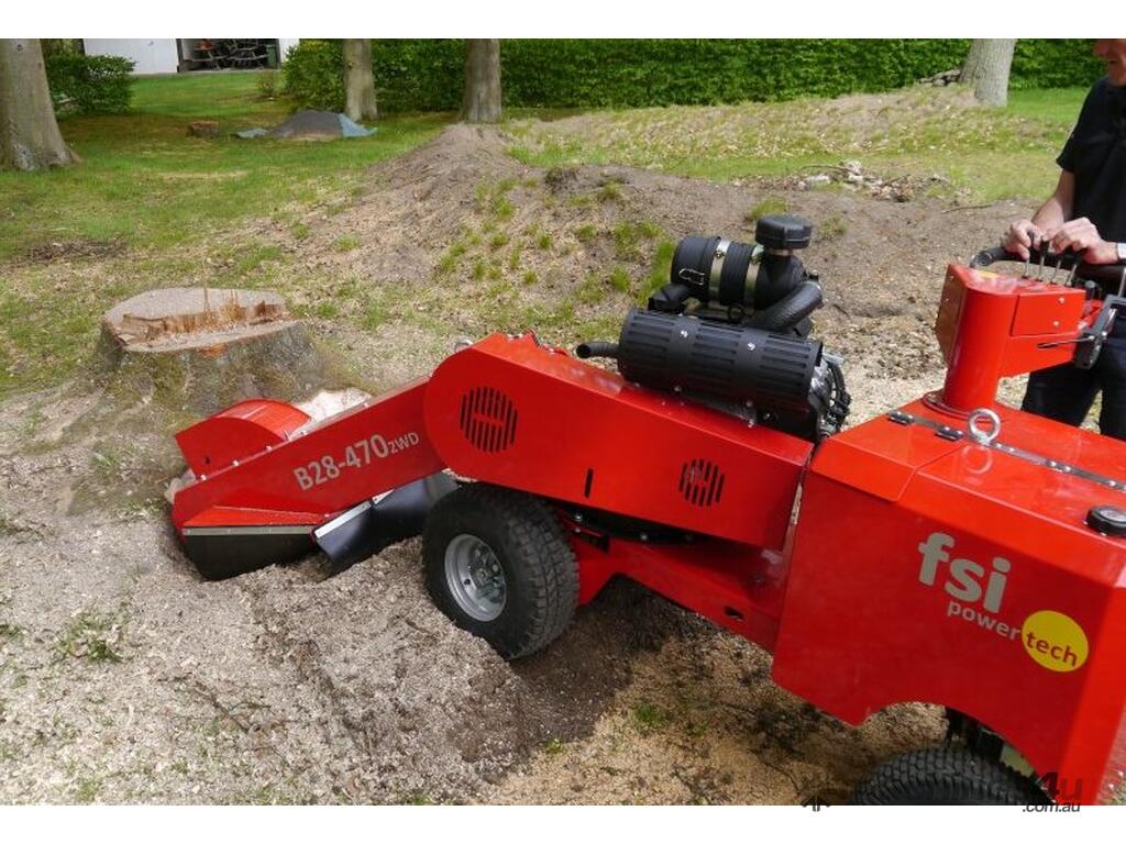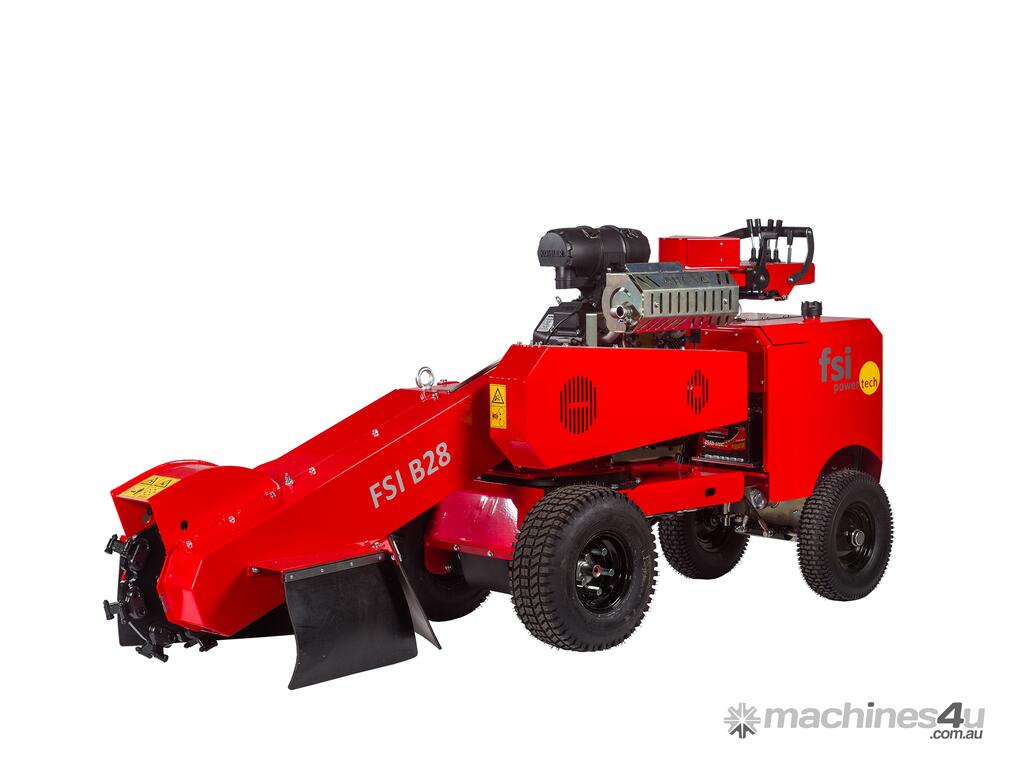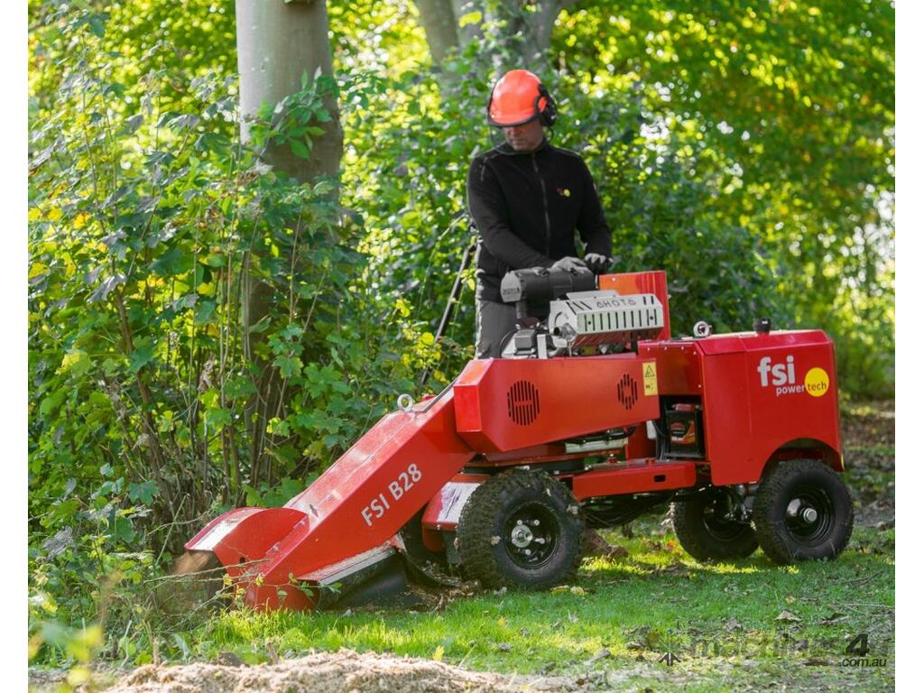 FSI B28 Self-propelled Stump Cutter/Grinder with 2WD and Gasoline Engine. Includes twin wheels with grass tires (width + 500mm).