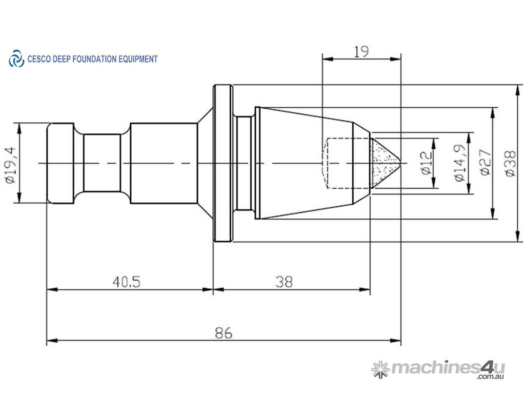 Fits onto all augers, core barrels and drilling buckets that take a 19mm shank tooth
