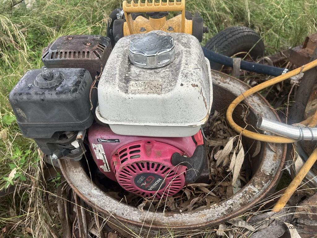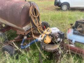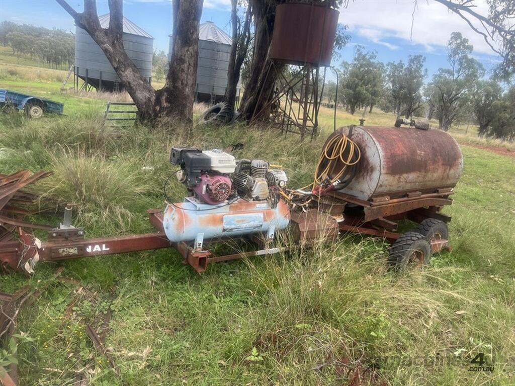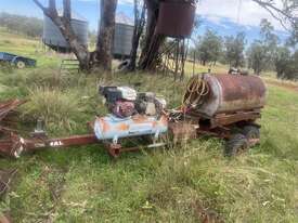 Tow behind fuel trailer with air compressor. Diesal tank is circa 2,000 litres. Hasn't been recently used in some time and motors won't start. Needs new plugs and clean fuel to operate. Both motors are Honda.