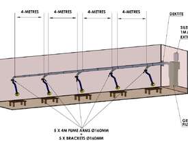 5x 160dia/4m reach Fume Arm - our arms boast 4x air flow efficiency of others on market