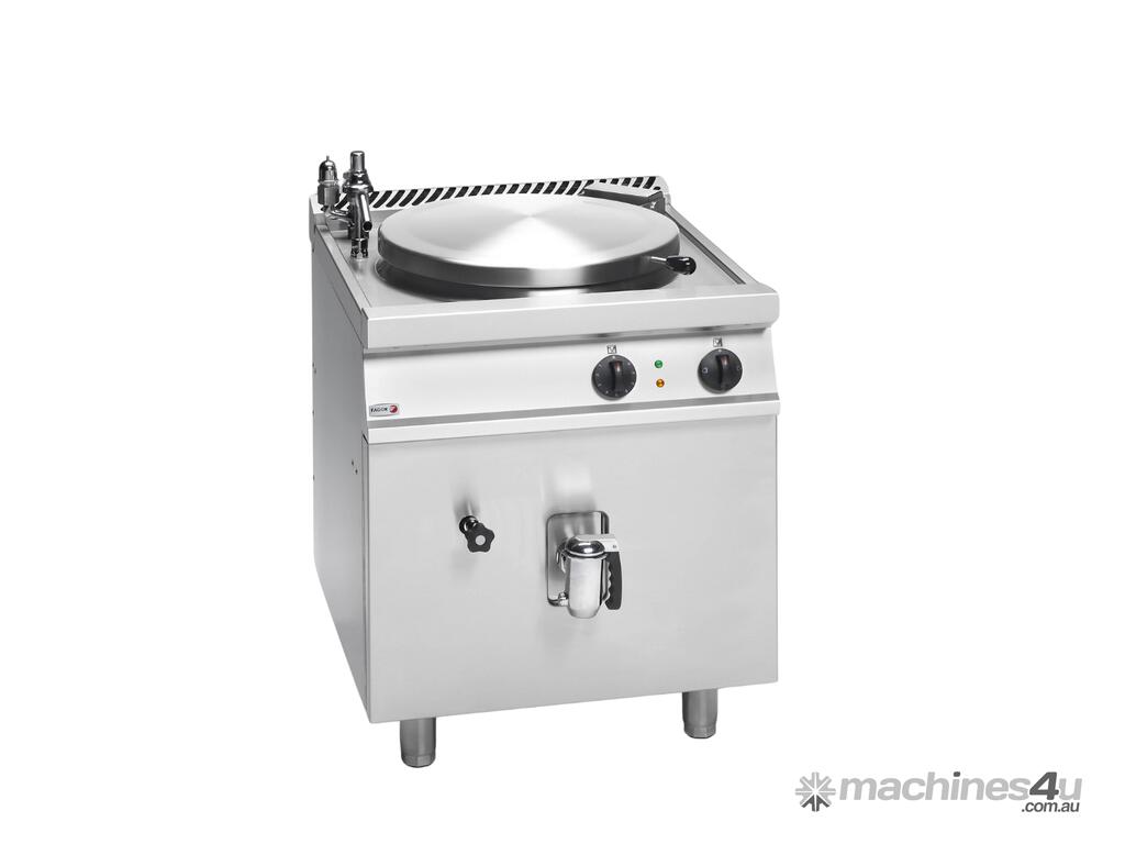 Fagor 700 Series Electric Indirect Heating Boiling Pan 80L ME7-10BM Key Features Made of stainless steel Capacity: 80L Indirect heating (bain-marie) Bain marie chamber. Counterweighted folding lid Heating by stainless steel resistors Thermostat control Taps for cold and hot water inlet Tap for emptying the tank. Pressure switch bain marie safety system Shielded elements controlled by thermostat Taps for filling the chamber, bain-marie and for control of the level Indicator lights to show when the machine is connected and when it is heating Pan filling by electrovalve, with cold or hot water selector Drainage tap Filling and drainage taps to control the level of the bain marie chamber Safety features for the water bath system: valve, thermostat, pressure switch Warranty: 2 Years Parts and Labour + 2 Years Parts only with Product Registration Depth: 775 mm | Width: 700 mm | Height: 850 mm | Power: 9kW 3~N 415V | Price: $13199 | Manufacturer: Fagor | Warranty: 2 Years Parts and Labour + 2 Years Parts only with Product Registration