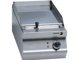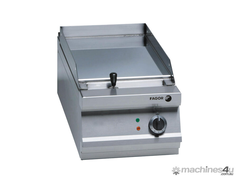 Fagor 900 Series Electric Chrome 1 Zone Griddle FTE-C9-05L Key Features Made of stainless steel Smooth hot-plate Surface area: 25 dm2 Shielded elements in stainless steel for heating Temperature: 120 ºC- 310 ºC With thermostatic control Fat collector under the grill Power: 6 kW Dimensions: 425 x 900 x 290 mm Packaging Dimension: 1x0.525x0.44m Packaging weight: 90kg Model Code for Stand: MB Years Parts and Labour + 2 Years Parts only Warranty with Product Registration within 14 Days of Invoice Depth: 900 mm | Width: 425 mm | Height: 290 mm | Price: $6679 | Manufacturer: Fagor | Warranty: 2 Years Parts and Labour + 2 Years Parts Only for Products Registered within 14 Days of Invoice