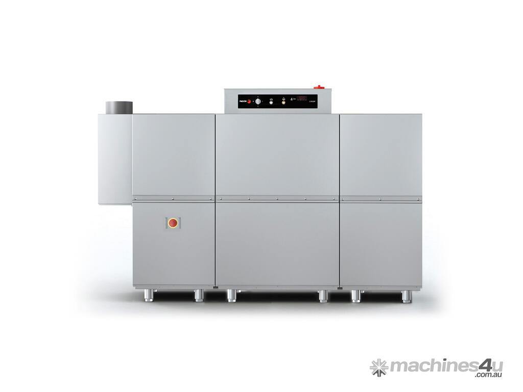 Fagor Concept Rack Conveyor Dishwashee Right Side Entrance CCO-225DCW If you desire an easily accessible dishwasher that’s large in capacity and can fit within your large restaurant or store, then the is your answer! Coming in with double effect rinse and pre-rinse, our Concept Rack Conveyor Dishwasher is nothing but perfect for your needs. Enjoy a high-power washing system with 5 upper and 5 lower washing branches, and a prewash module with 3 upper and 3 lower washing branches. This is a fast selling purchase for any prospective restaurant or café owner who operates a medium to large establishment. Key Features: Prewash module with 3 upper and 3 lower washing branches High-power washing system with 5 upper and 5 lower washing branches 3 washing programs: intensive (90 baskets/hr), medium(135 baskets/hr), high capacity(180 baskets/hr) Double effect rinse and pre-rinse Comes with 2 base baskets, 2 baskets for plates, 1 basket for cutleryR290 natural refrigerant Additional information: Modules Consumption: AS-260 + PL3 + LP +DA AS-260 Anti-splash guard supplement LP Main wash DA Double effect rinse and pre-rinse PL3 Cold water prewash L5 First wash with hot water Left Hand Side Entrance HOURLY PRODUCTION POSITION OF THE SWITCH CCO-180 CCO-225 CCO-320 I (*) 90 baskets/hr 125 baskets/hr 127 baskets/hr II 135 baskets/hr 175 baskets/hr 255 baskets/hr III 180 baskets/hr 225 baskets/hr 320 baskets/hr (*) The standard DIN 10534 is met at this speed Remember that the quality of the wash depends on the speed of the appliance and the type of dirt to be washed. Therefore, the wash speed should always be appropriate for the dirt on the dishes. Warranty: 2 Years Parts and Labour Depth: 790 mm | Width: 2360 mm | Height: 1560 mm | Power: 415V/50Hz ; 45kW/3~N | Net Weight: 381 | Price: $57590 | Manufacturer: Fagor | Warranty: 2 Years Parts and Labour