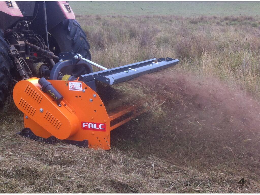 Tough and versatile, the Falc Agila, with its 120hp gearbox, high clearance body and large material intake, will comfortably handle pasture topping or the mulching of vegetables, potatoes, orchard and vineyard prunings as well as cover crops. Available in working widths from 1.6m to 3m, and with a choice of skids, rear roller or dual wheel height control.