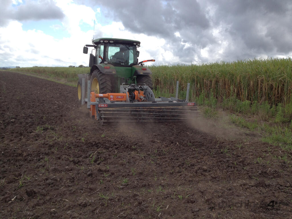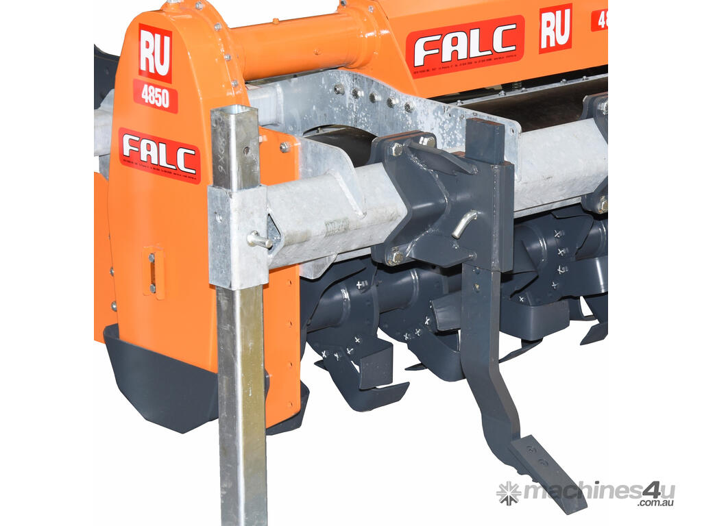 The FALC RU is rubber body rotary hoe for working in sticky soil conditions. The Heavy-duty Galvanised frame has strong front and rear toolbars for the attachment of various tool options. The heavy-duty drive line with 300 hp gearbox and simple shear-pin protection and chain-drive system is simple to operate and service.
