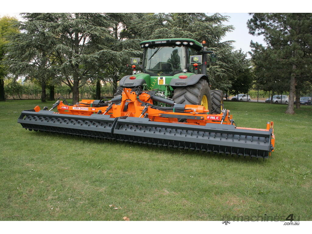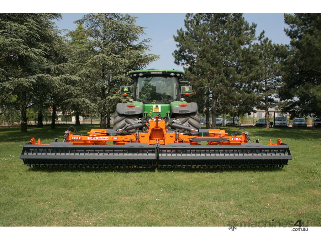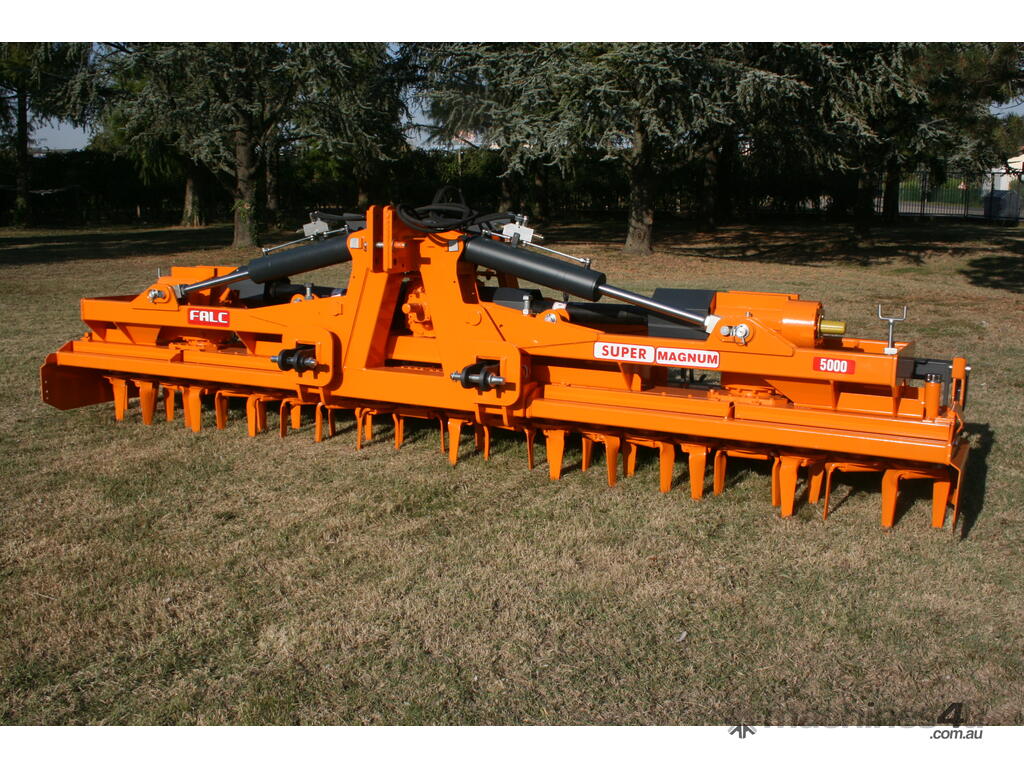The Falc Super Magnum P Power Harrow is a high-performance folding machine built for large-scale, demanding operations. Suited to tractors from approximately 160–350 HP and with working widths from 5 to 7 metres, it delivers efficient, high-output seedbed preparation in fewer passes. Featuring a heavy-duty frame, robust transmission, and durable tines, it handles tough soils with ease while producing a fine, level finish. With hydraulic folding for easy transport and independent wing float for consistent ground follow, it’s an ideal choice for contractors and broadacre farmers seeking productivity and reliability.
