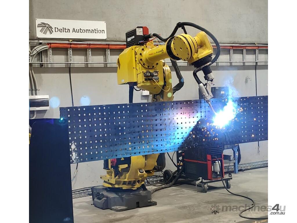 High quality refurbished Fanuc R2000iA 210F Industrial Robots (including Arctool Software) retro-fitted with a brand new ARTSEN II PM 400AD-R Pulse MIG Water Cooled Packages.