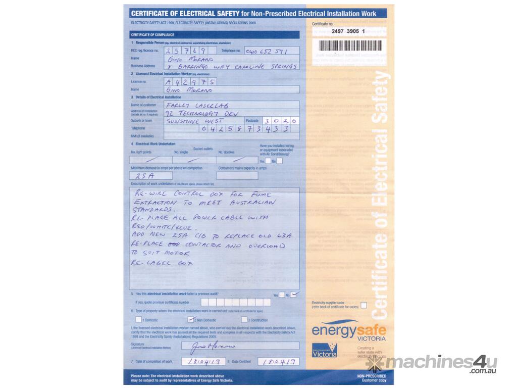 Fume Extraction Specifications: