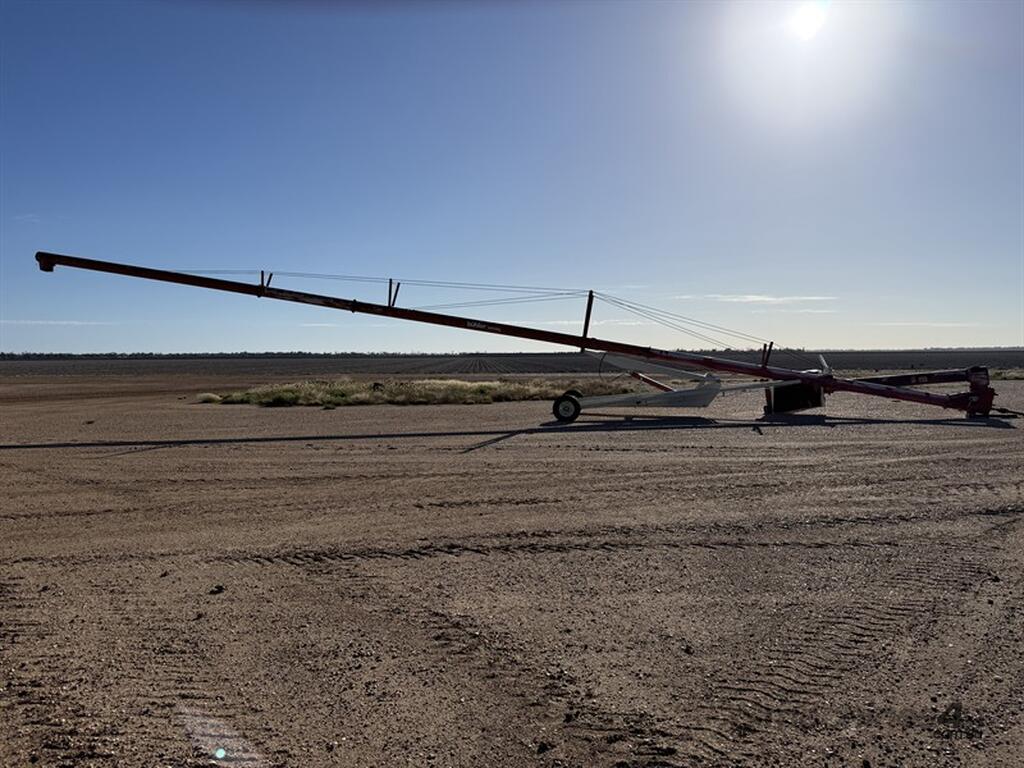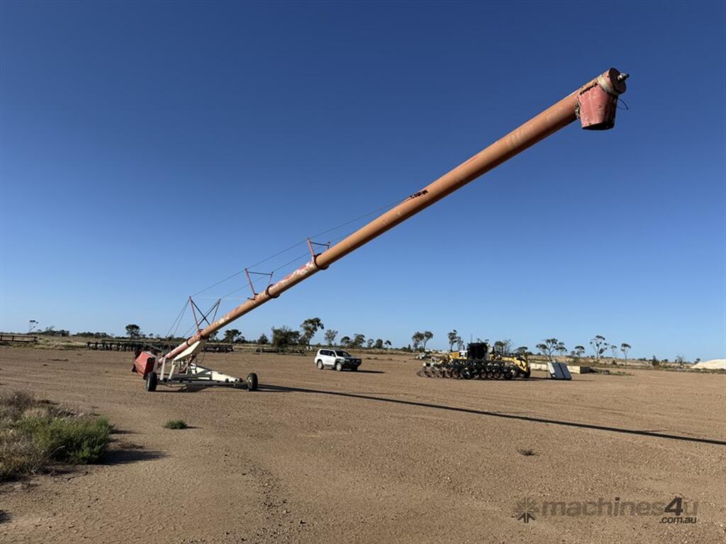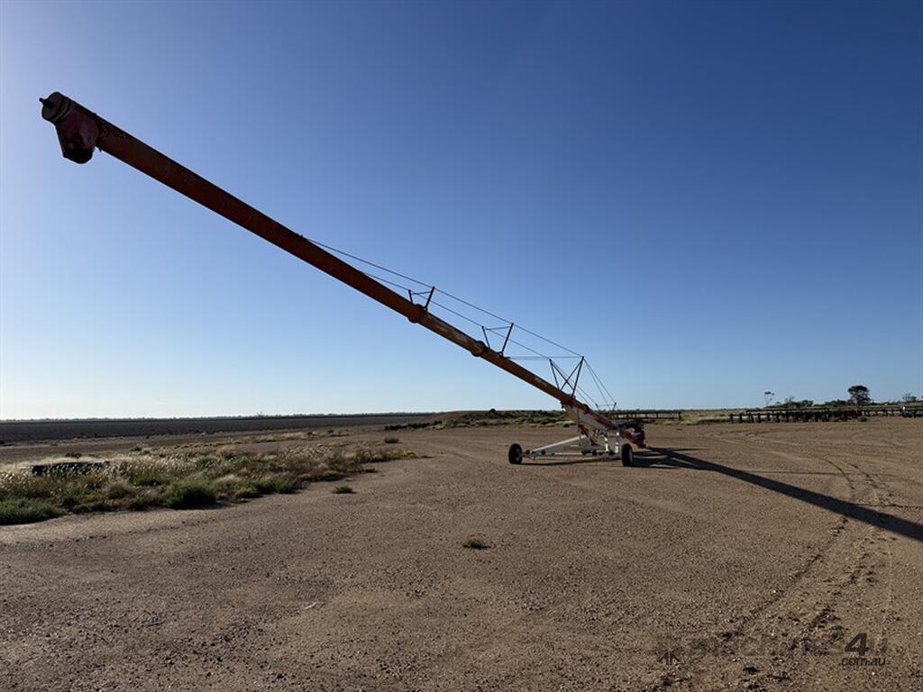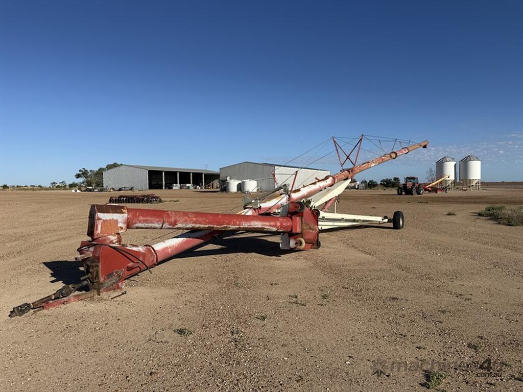 Farm King 1385 Swing Away Grain Auger. 13 inch by 85 foot auger, PTO drive, hydraulic lift, wing out swing away. Item is a part of a major ag reduction sale. Located at Mungindi.
