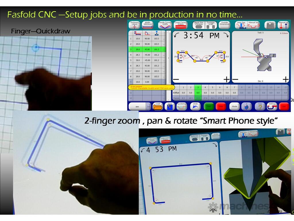 Fasfold can control up to 11 axis and any kind of pressbrake with various combinations of sevo electric and servo hydraulic axis.
