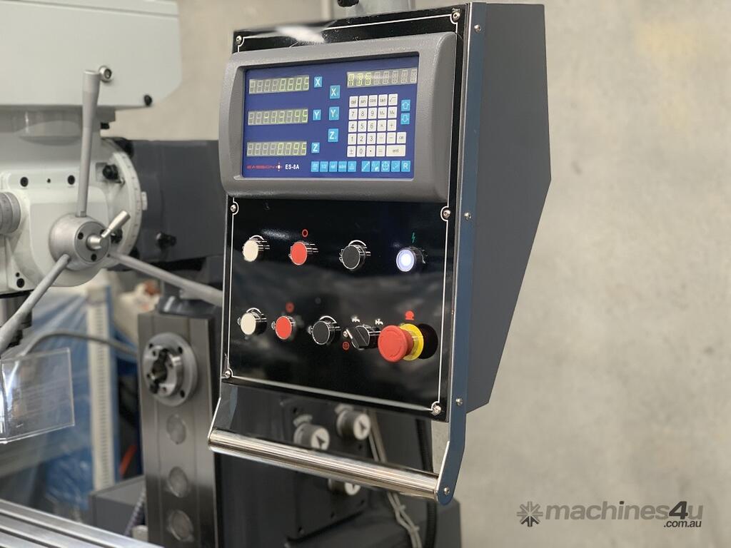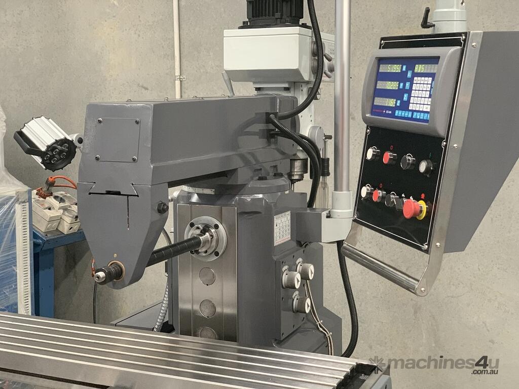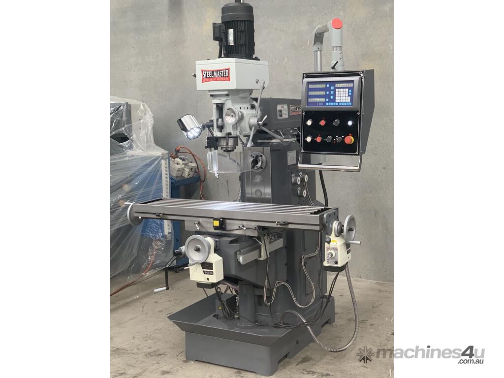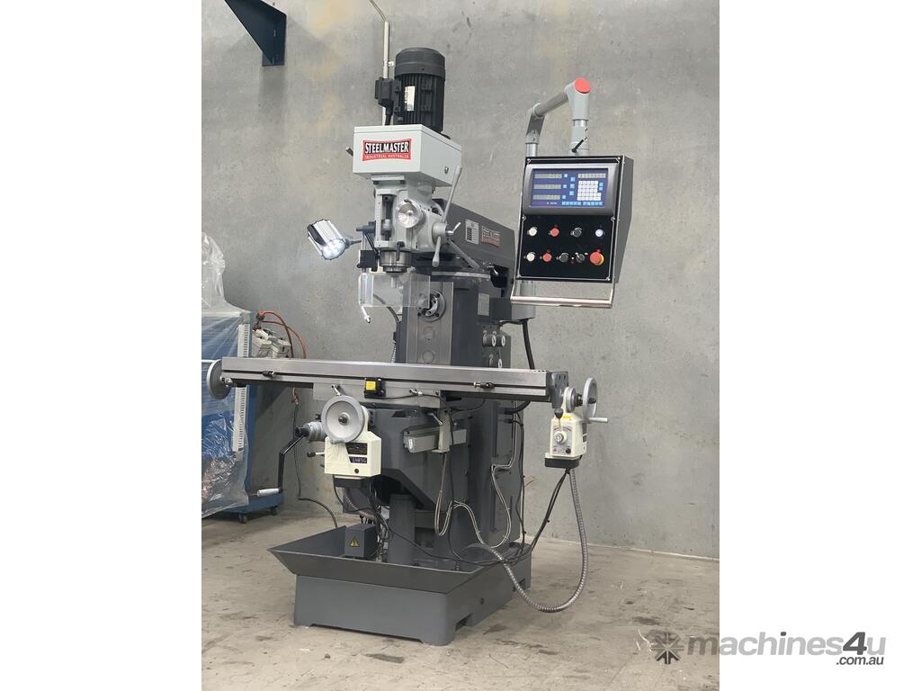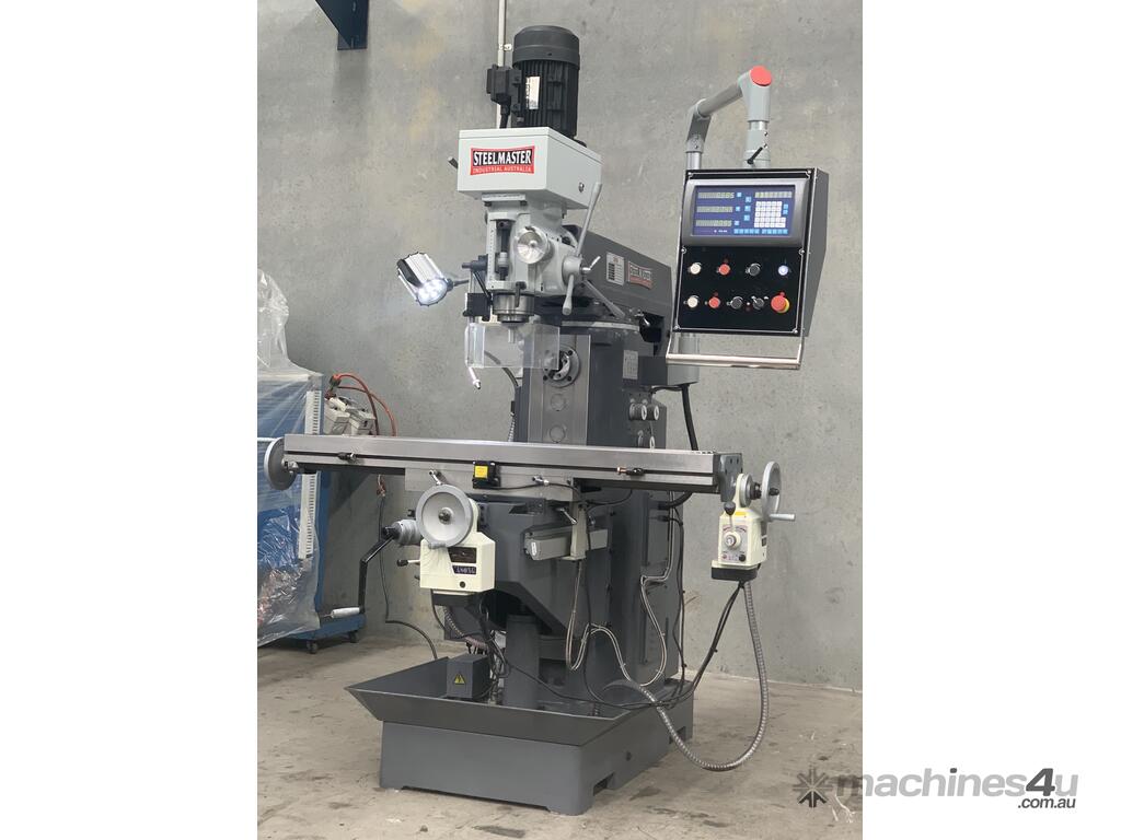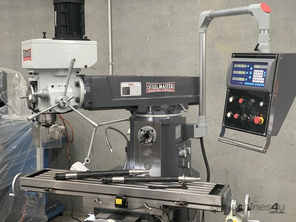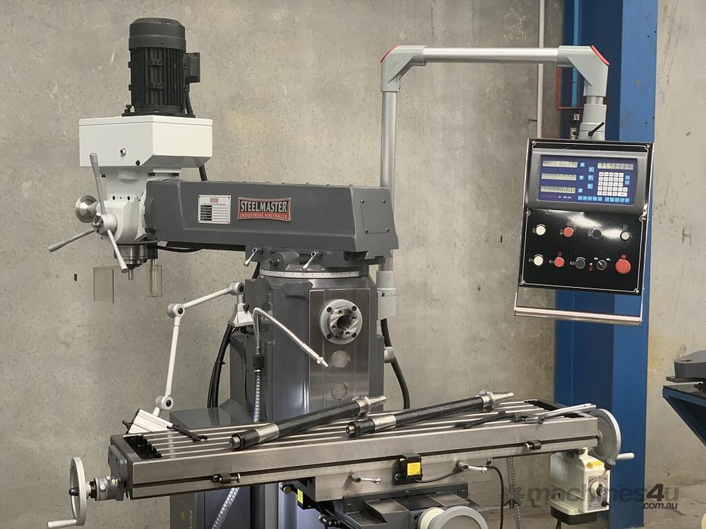 SM-MGH757Z. Universal Mill Steelmaster. Gear Head Drive with Easson 3 Axis Digital Readout Power Quill Feed, 2 Axis Power Feed, 1270mm X 280mm Table, LED Light. V 2.2Kw