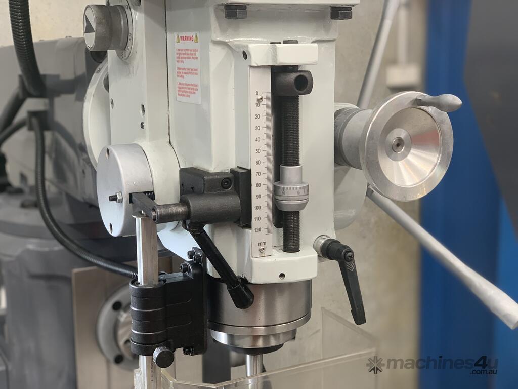 At last! A Universal Milling Machine With The Lot! – X,Y & Z Axis Power Feeds! Huge Tee-Slotted 280mm x 1270mm table. It has all the features that larger mills have like power table feeds and a long quill travel with power feed with a calibrated stop adjuster. The very heavy castings and large slide surfaces will give incredible performance and stability. And with the turret type head, its capacities are quite large. All this combined with the flexibility of a Horizontal Arbour and strong Volt operation makes this your best partner. Shop around, won't find this kind of value in a mill of this type and size.