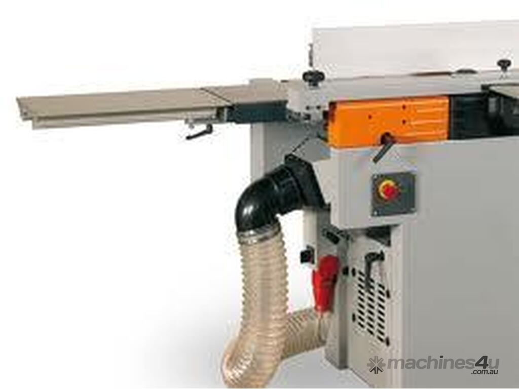 The horizontal mortiser is mounted on the planer side. An optional dowelling device can be added to increase the mortiser capability.