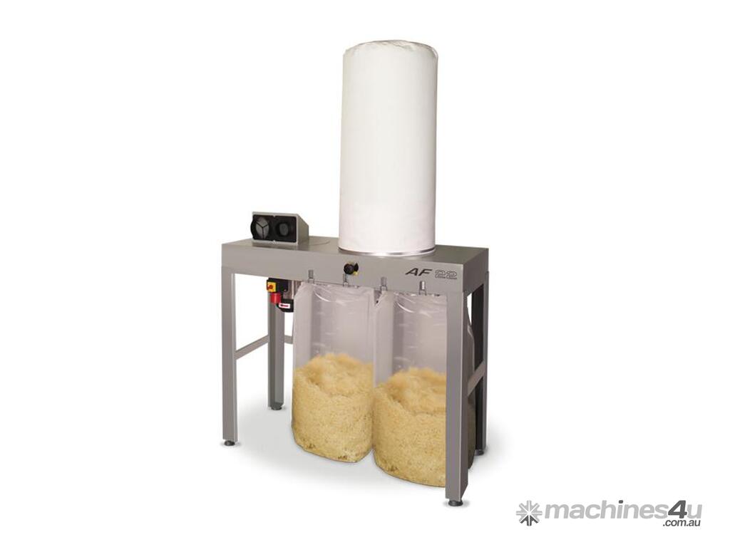 The AF 22 is the top seller among the standard extraction units and is available as a mobile or stationary model. With a footprint of only 1300 x 580 mm, the AF 22 is a real space-saver. Its vacuum power measures an exceptional 3100 m³/h, which means the AF 22 is unmatched in this price/performance class. The two chip bags can hold up to 400 litres and are especially easy to change thanks to the chip double-bag system. The AF 22 can be ordered for a vacuum hose or vacuum pipe connection as required