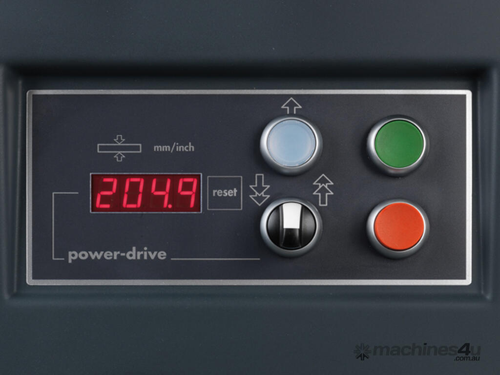 > Optional: Height and angle adjustment of the saw and spindle accurate to a tenth of a millimetre as well as thicknessing height adjustment with the electronic “Power-Drive” control.