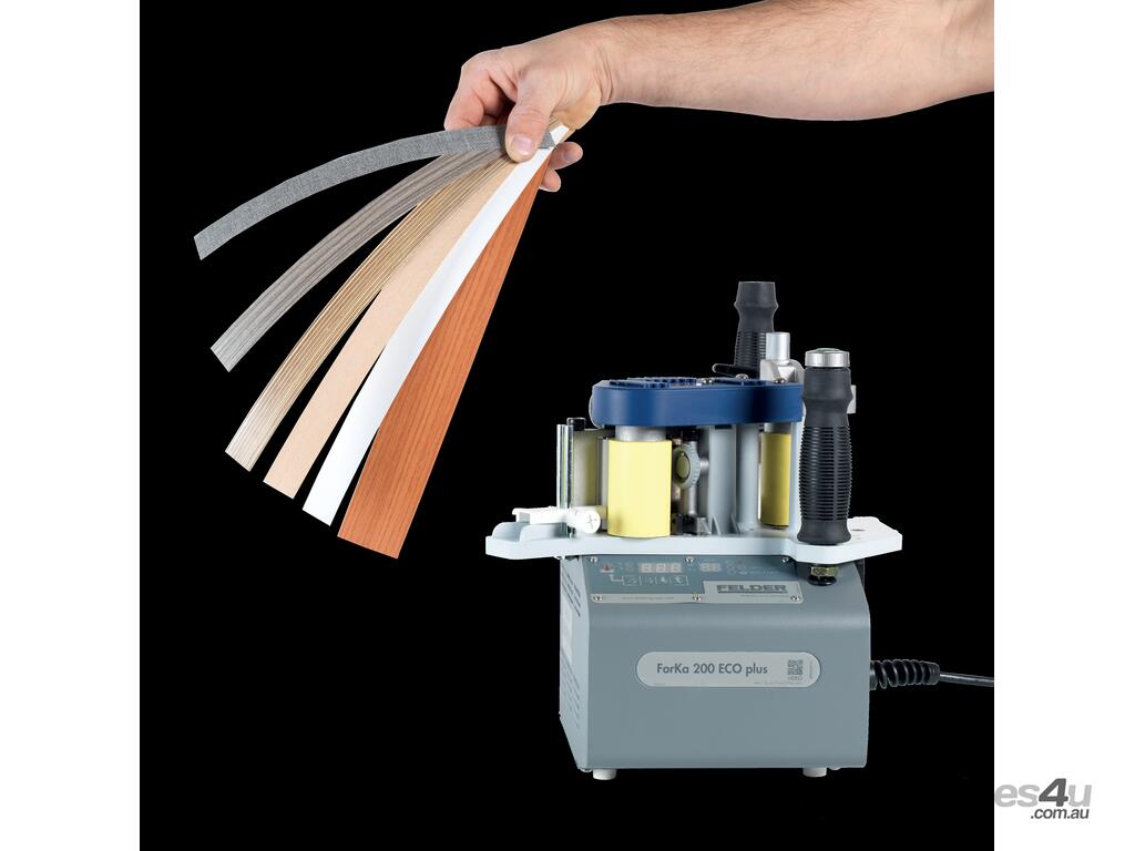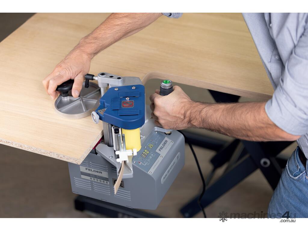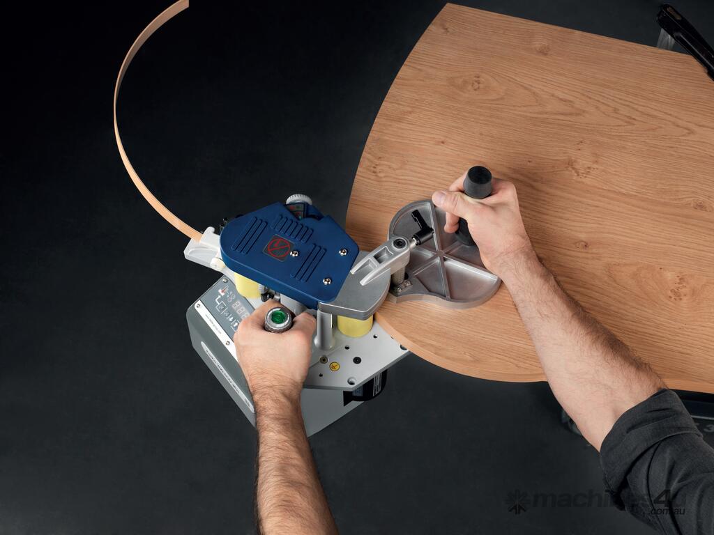 Mobile manual edgebander with gluepot for stationary and mobile use during assembly work. The ForKa ECO manual edgebander can be used for convex and concave edges as well as straight edges. Processes ABS-, PVC- and solid wood strip edging. A minimum inner radius of 25 mm is possible, depending on the edgebanding material. Scale for edge thickness. Short warm-up time with quick heating gluepot. Flexibility as a result of use of glue granulate.