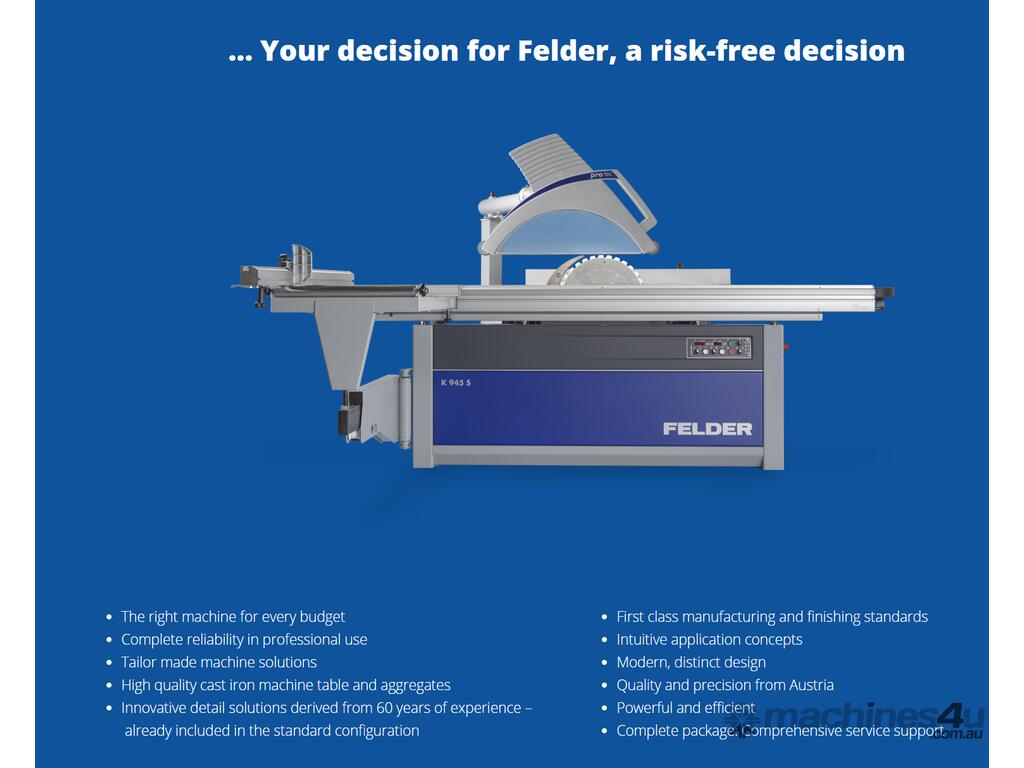 The Felder PCS Safety system is the answer to your concerns around blade safety and creates a safer environment for your business, school, community shed or home workshop!