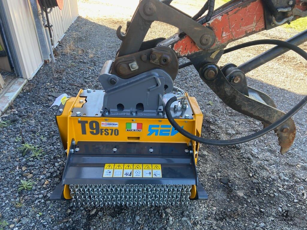 The FEMAC T9-FS90 REV Hydraulic Flail Mower/Mulcher is a high quality, Italian built, attachment with a 700mm cutting width, and maximum cutting diameter of 120mm. Designed for excavators from 4 - 8T, it is suitable for vegetation management, clearing fire breaks and mulching work.