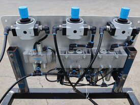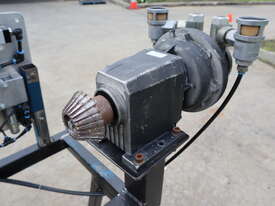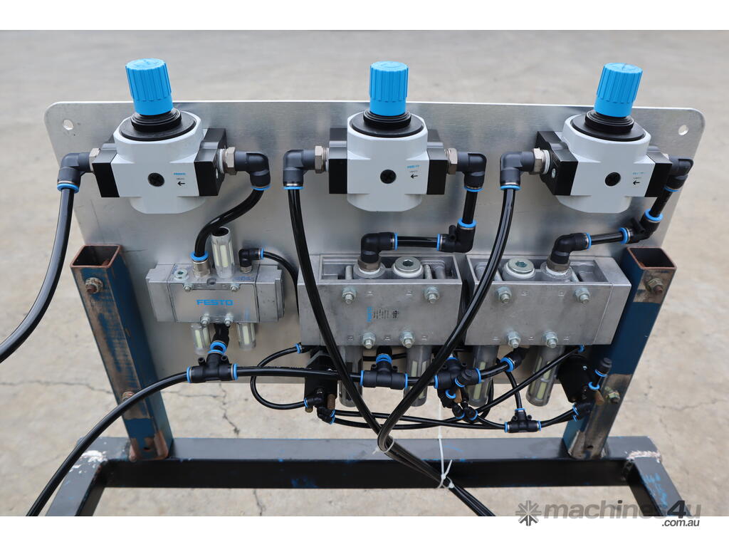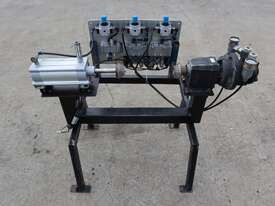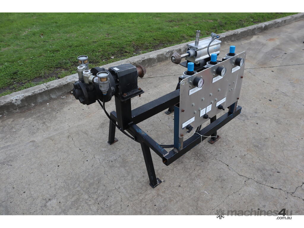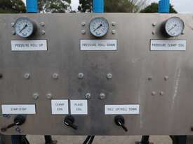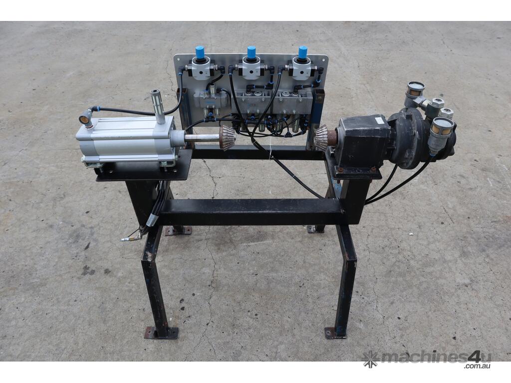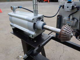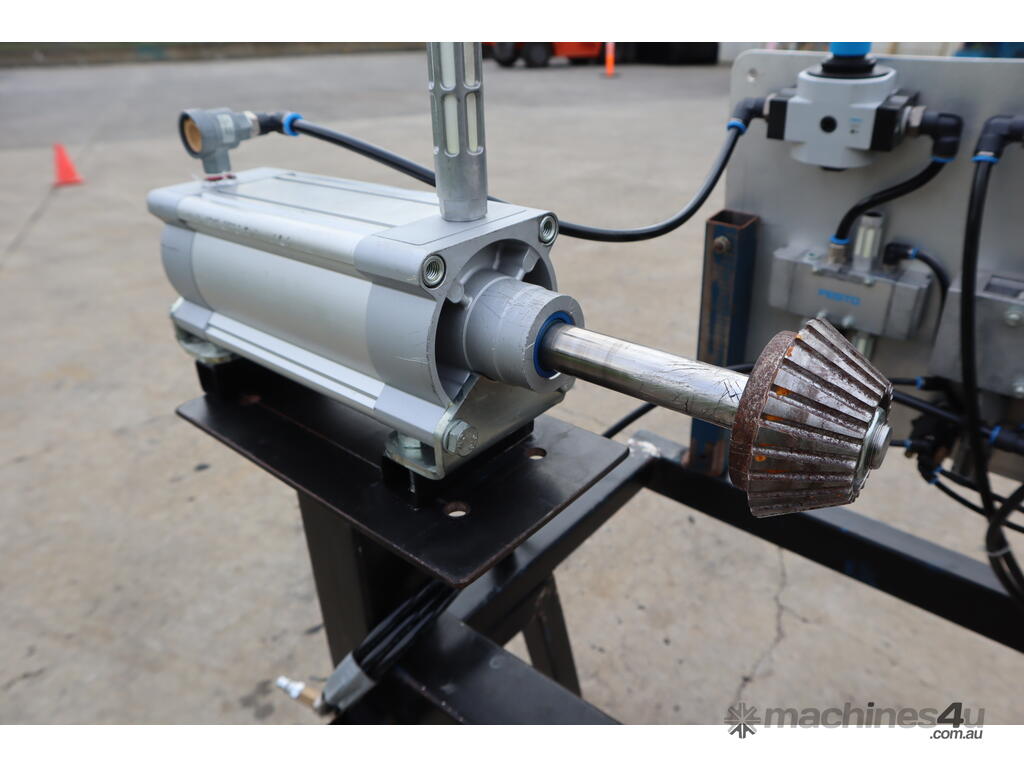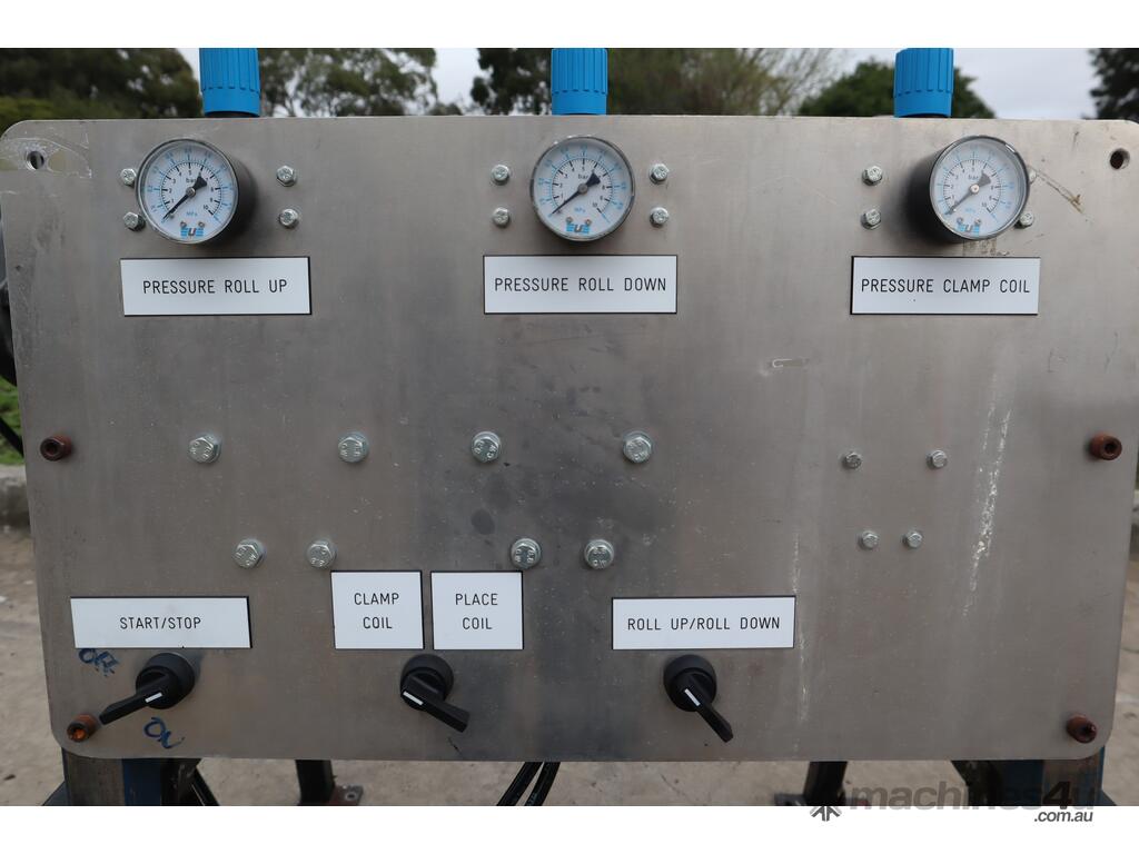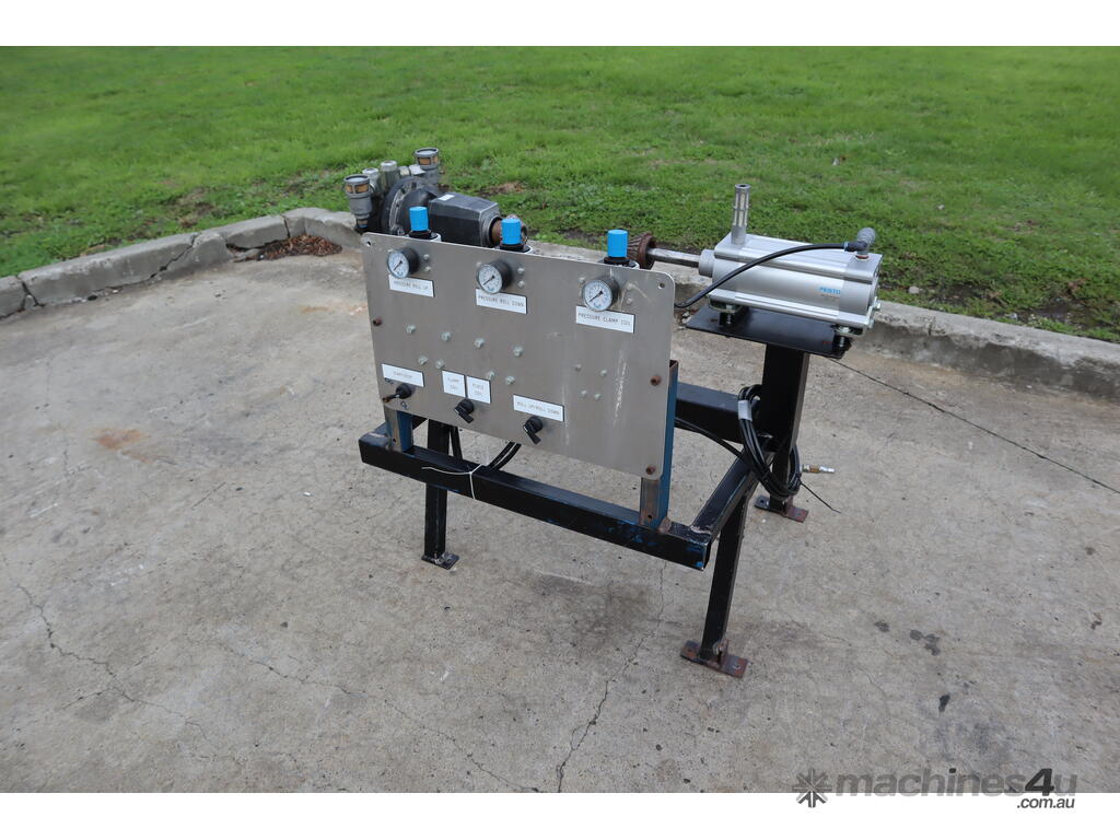 It features a Festo actuator cylinder for clamping and a Globe airmotor for winding and unwinding the core roll.