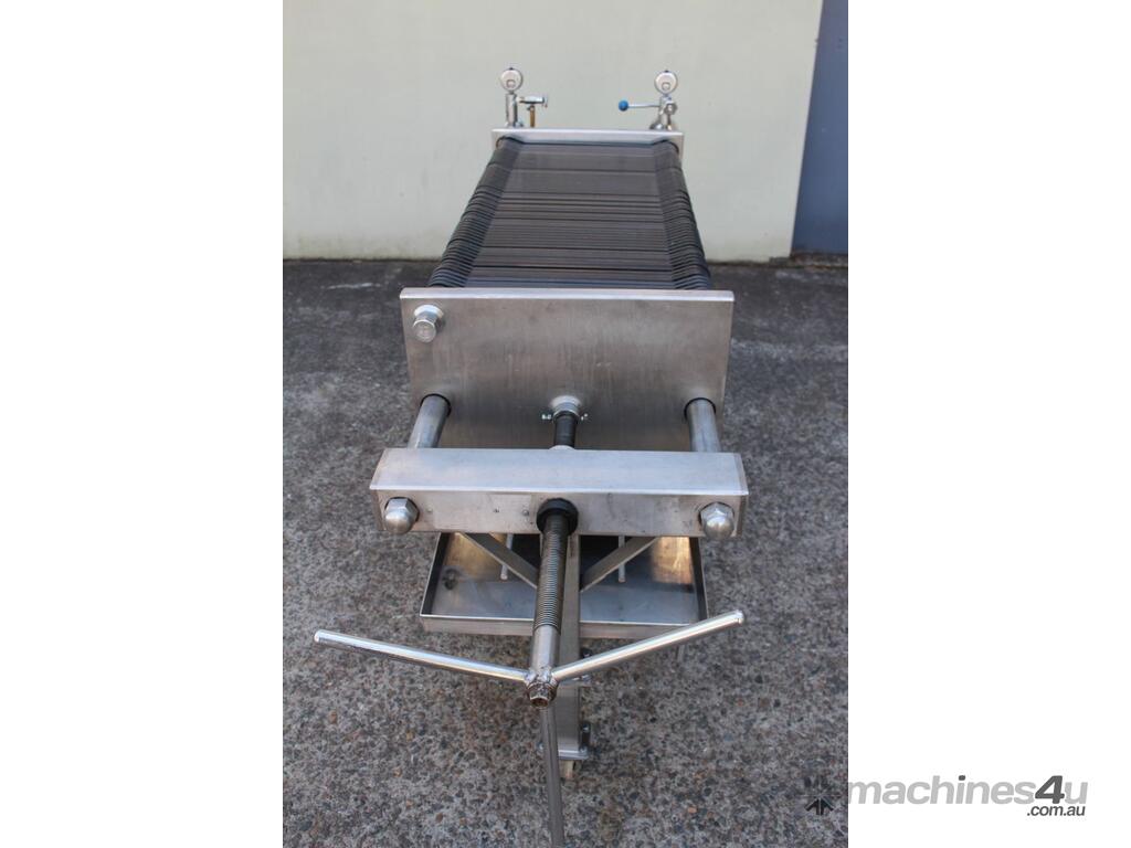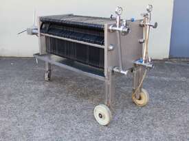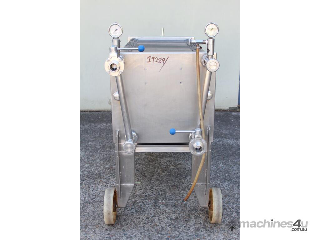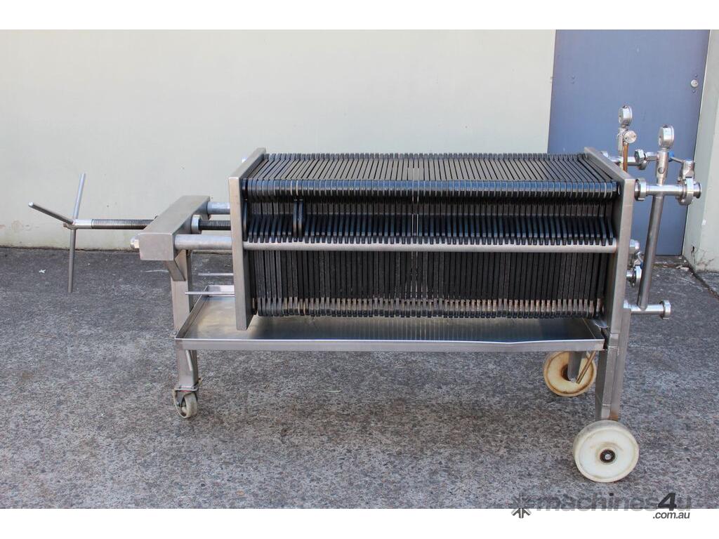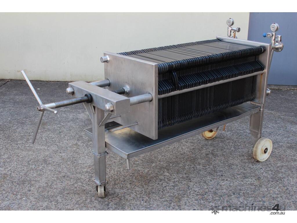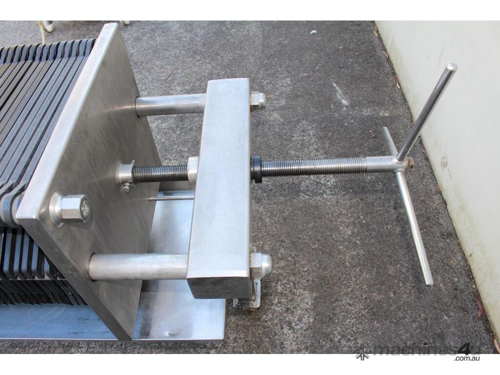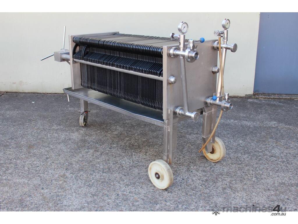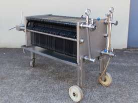 Filter Press, complete with 66 plastic plates 40cm x 40cm, all stainless steel frame with drip collecting tray, pressure gauges, mobile