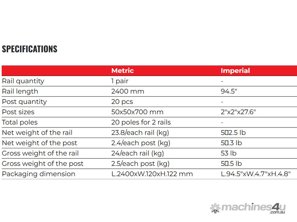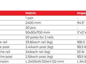 Note: Sold as a set, which includes 2 rubber-topped rails and 20 posts with rubber caps.