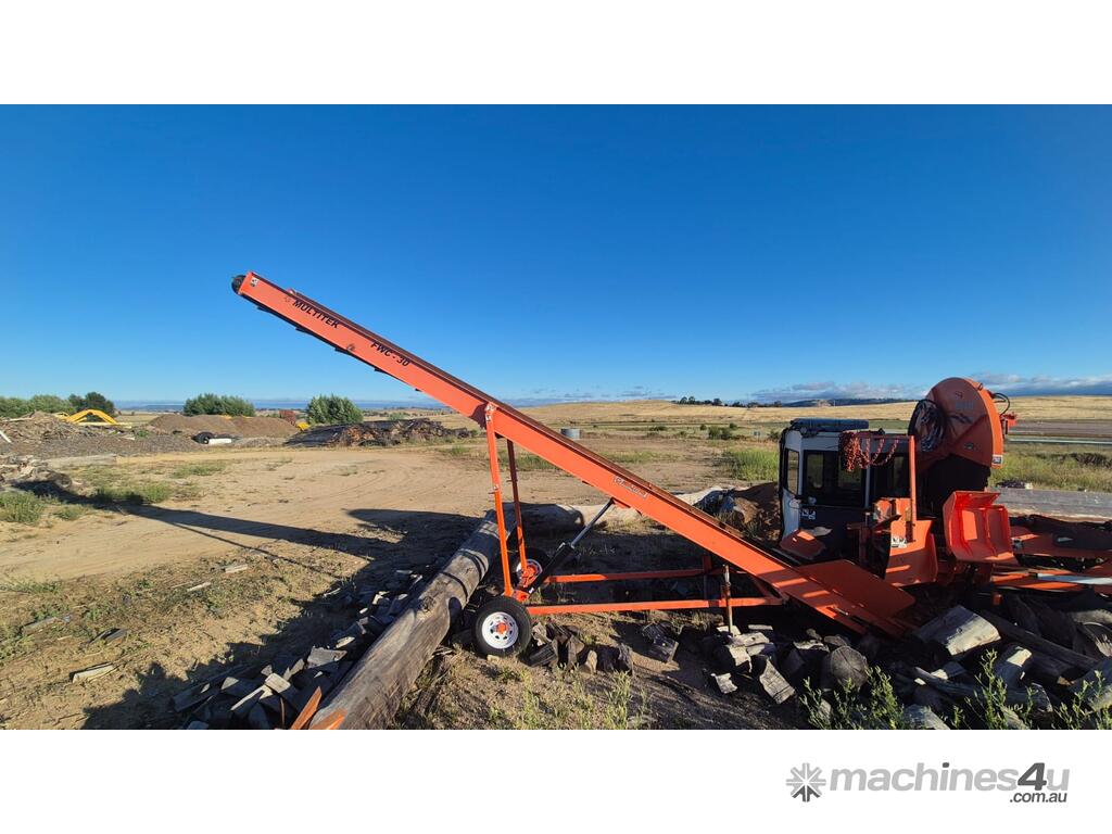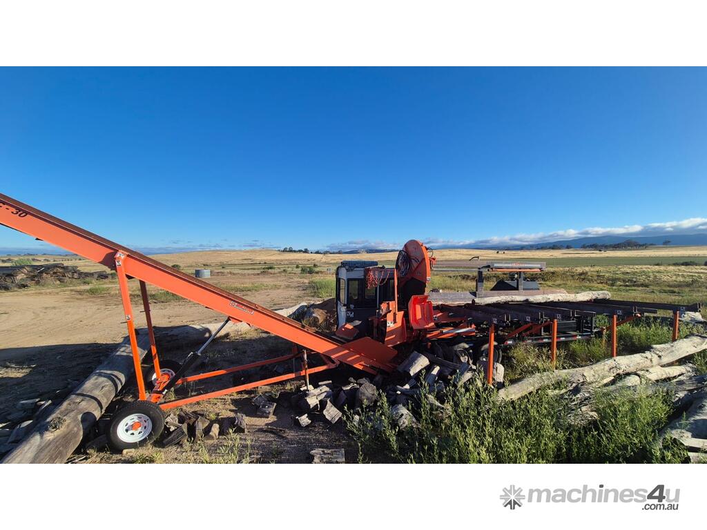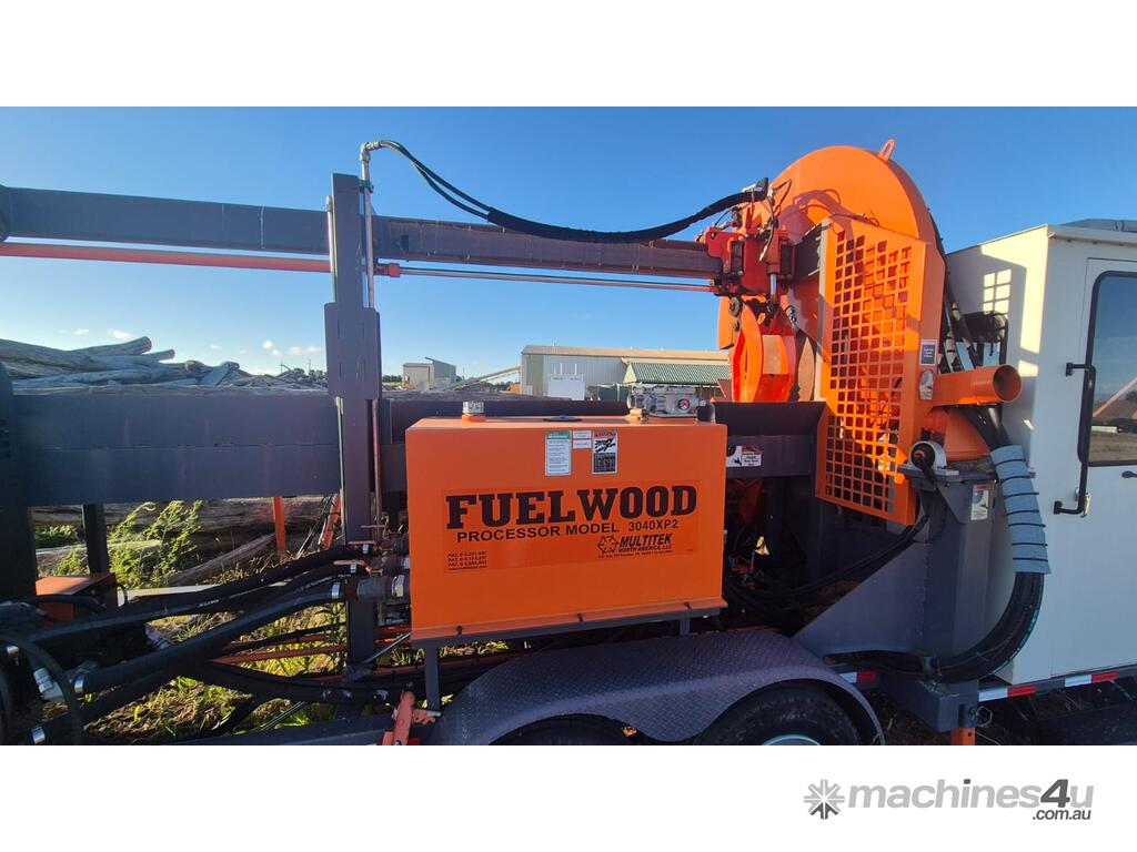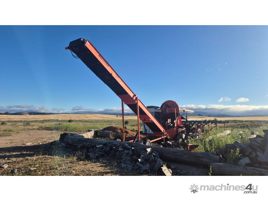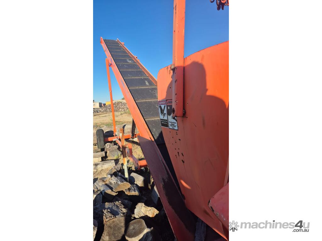 Used Multitek firewood processor unit complete with hydraulic stacker conveyor.