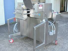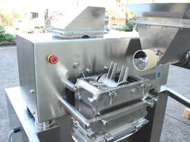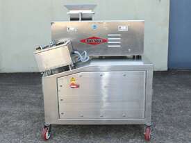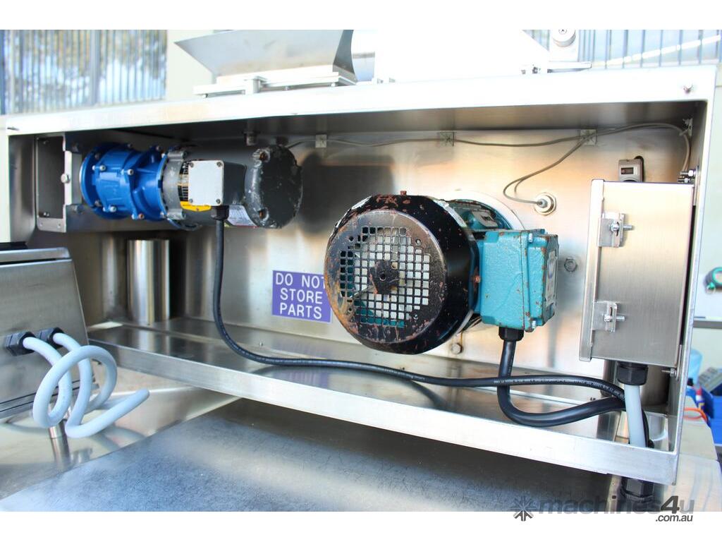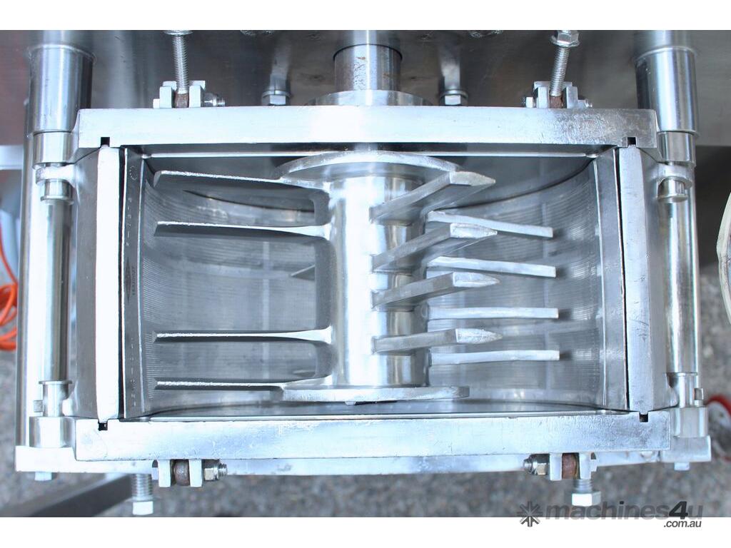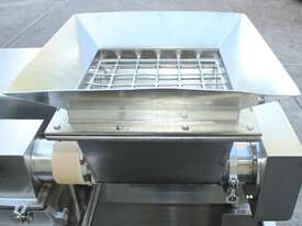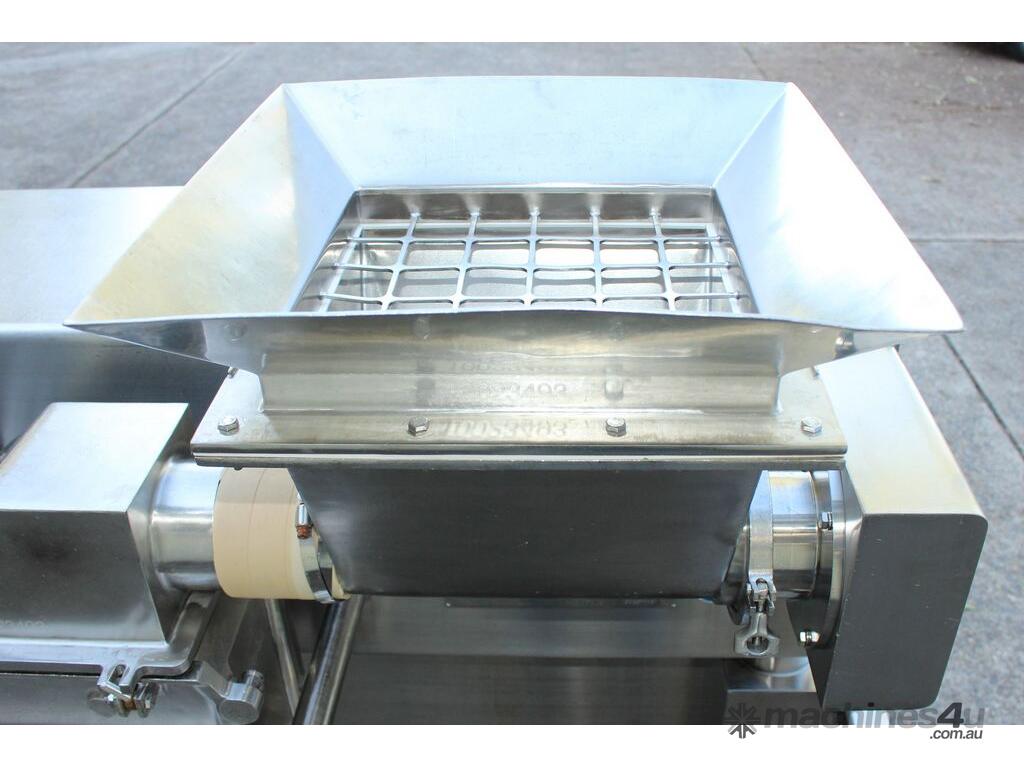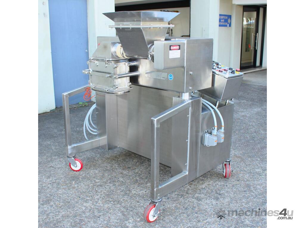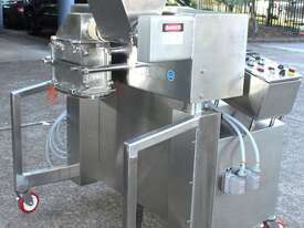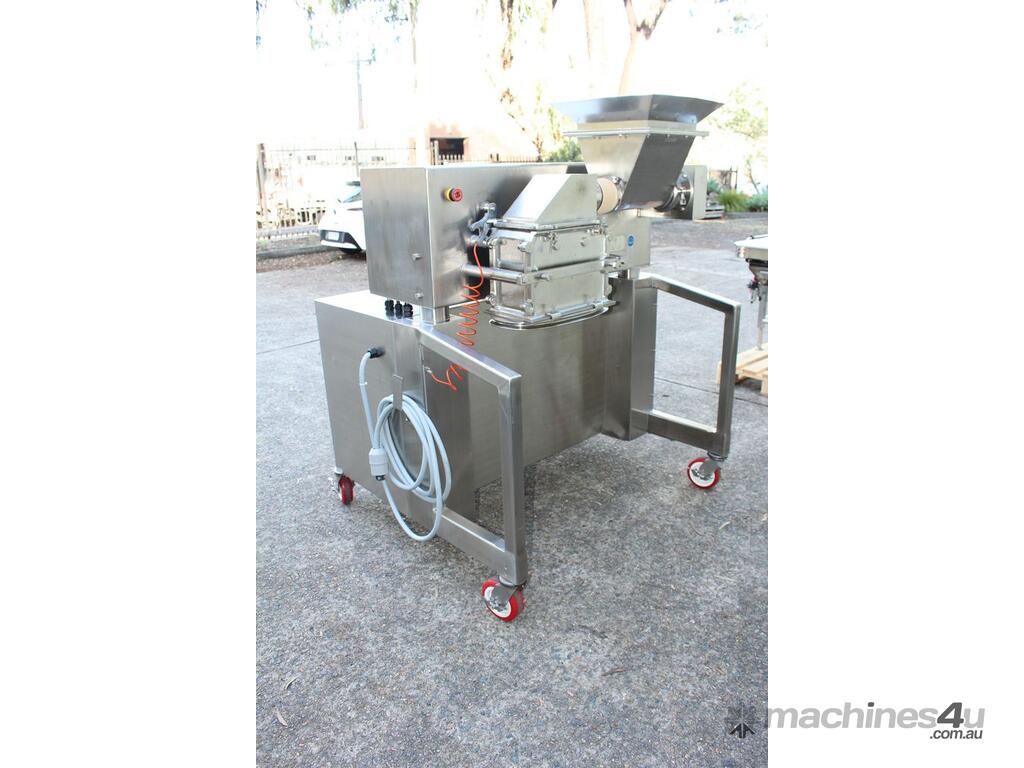 Fitzmill Hammermill with Auger Feeder, "Fitzpatrick" model D6A, high throughput rates of 200-1,000 kg/hr, auger screw feed system with hopper, 208V three phase, 18A full load Amp, 60Hz, complete with one interchangeable screen, mobile stainless steel construction