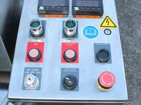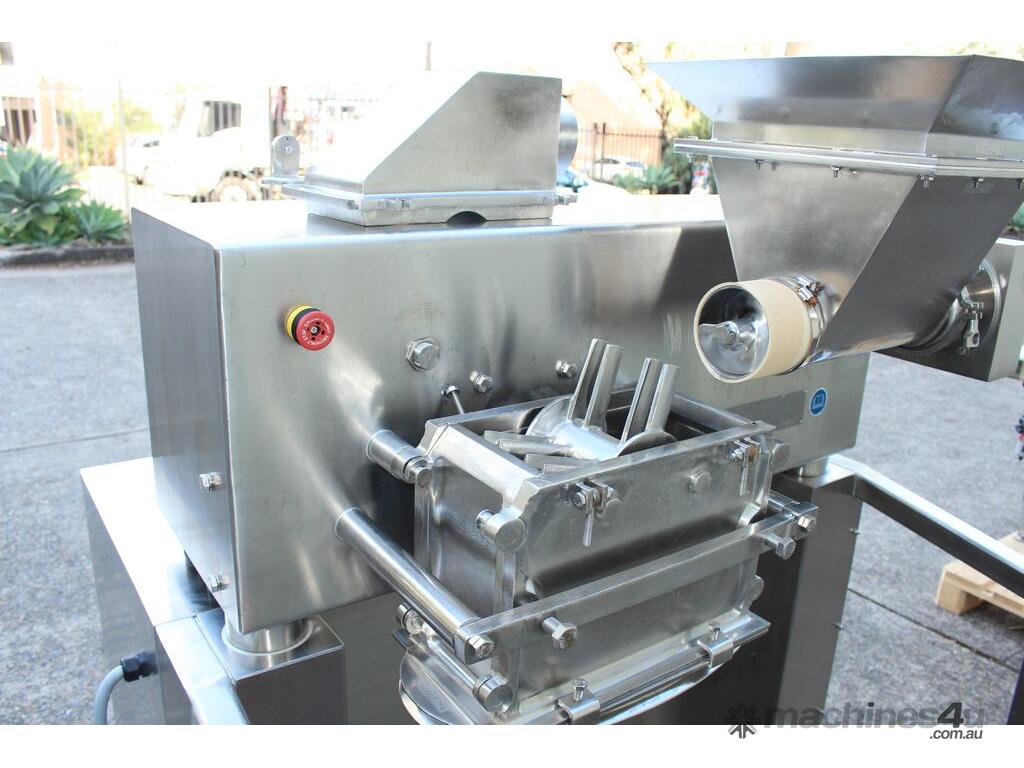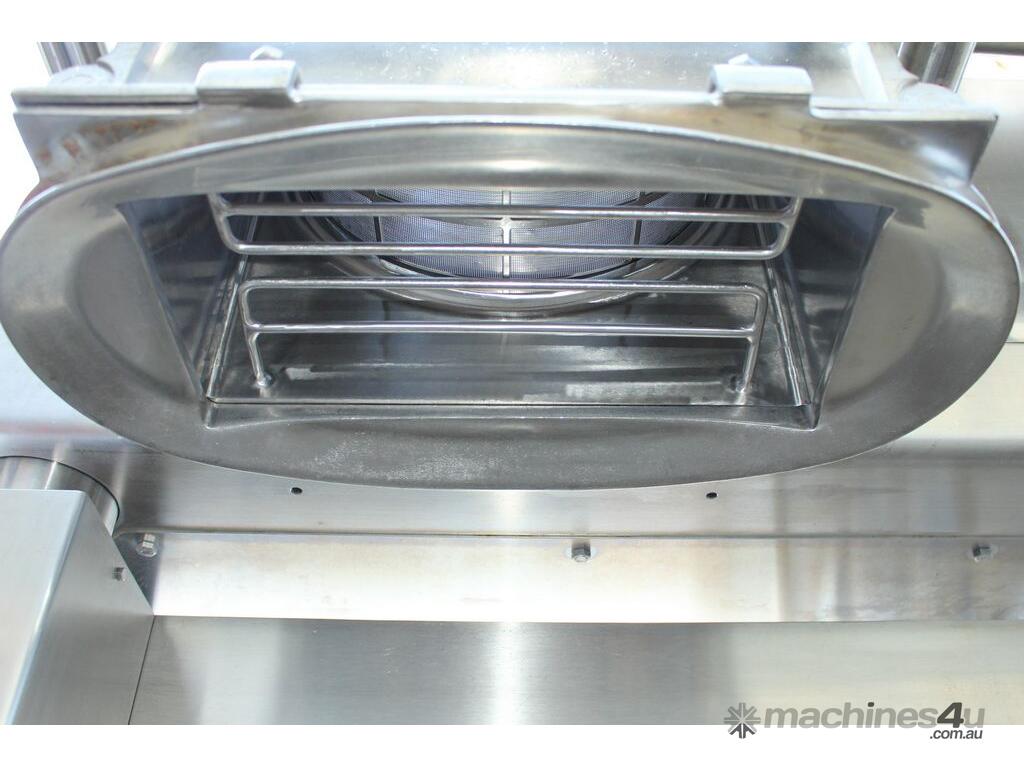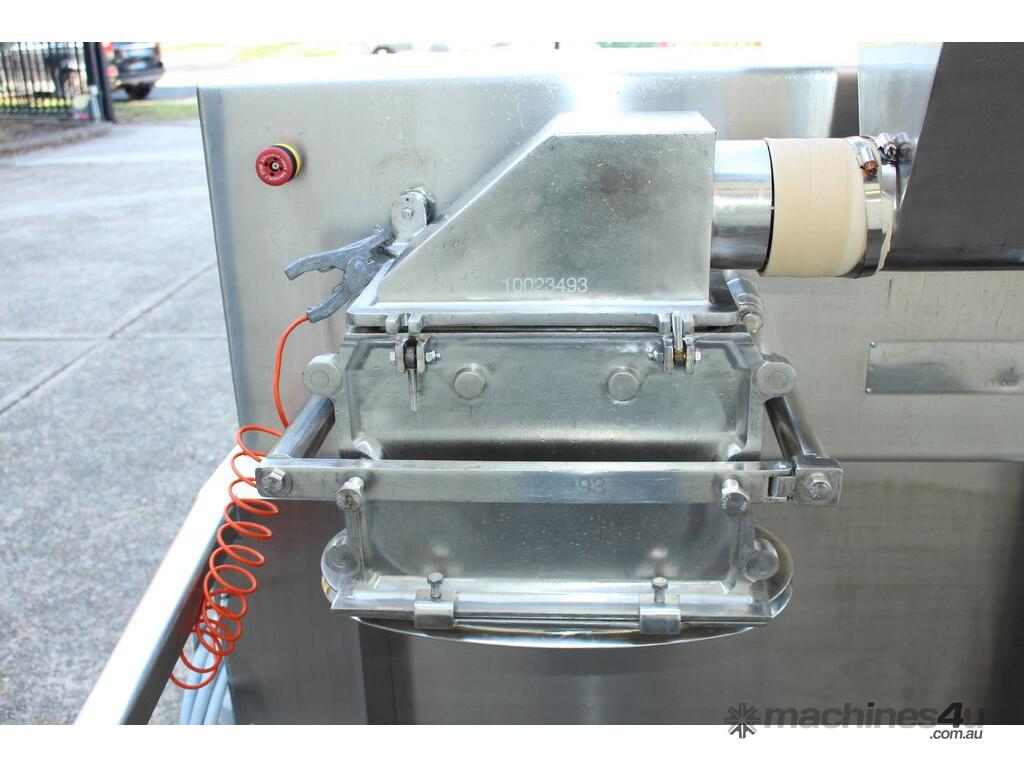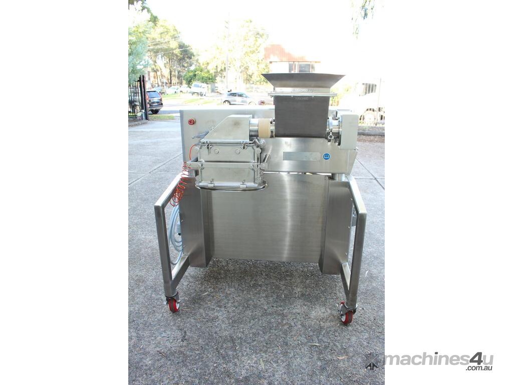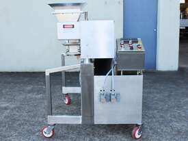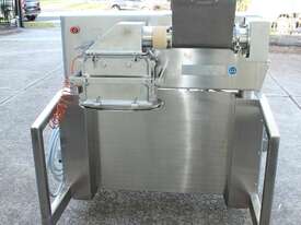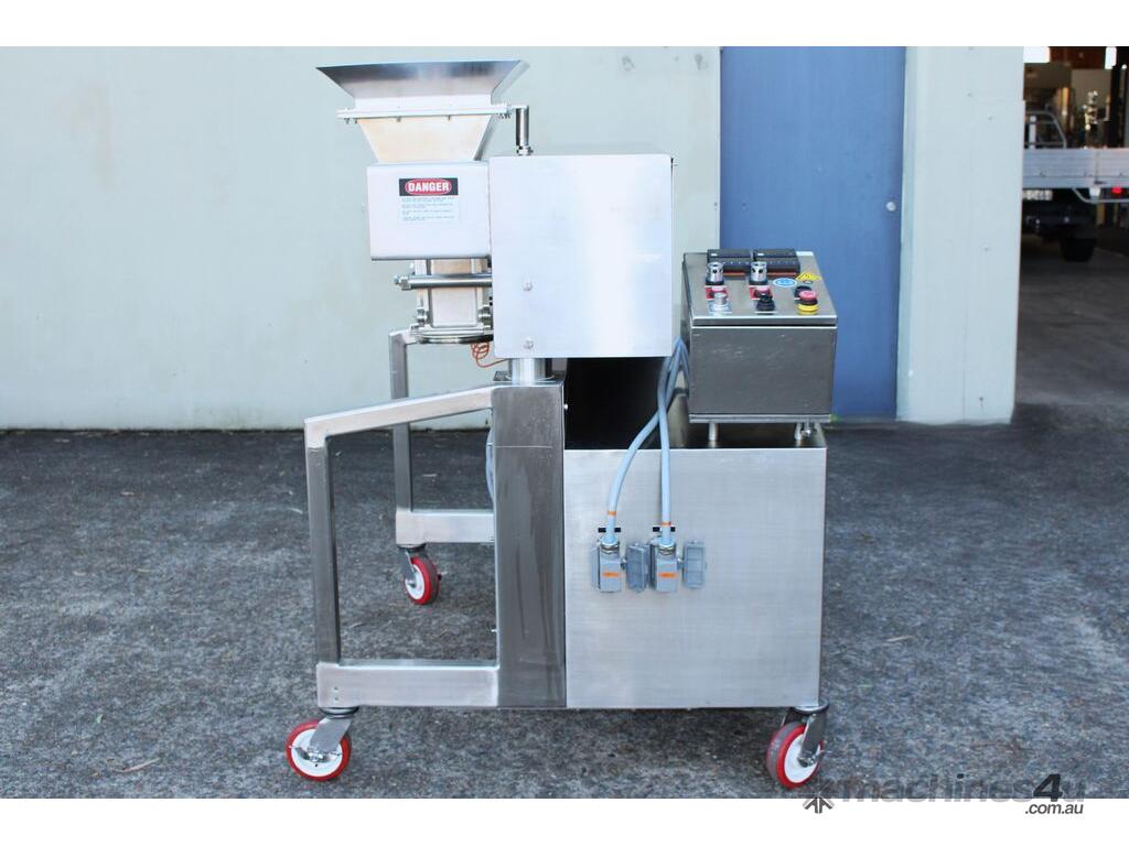 Fitzmill Hammermill with Auger Feeder, "Fitzpatrick" model D6A, high throughput rates of 200-1,000 kg/hr, auger screw feed system with hopper, 208V three phase, 18A full load Amp, 60Hz, complete with one interchangeable screen, mobile stainless steel construction
