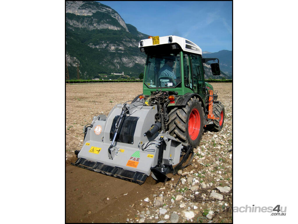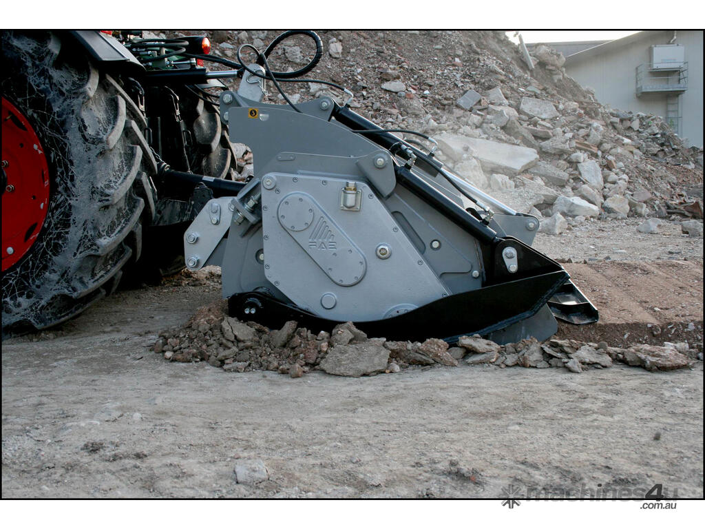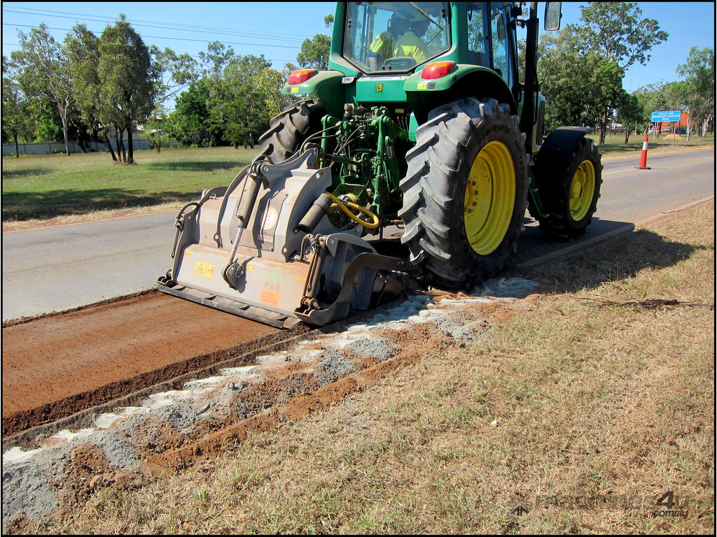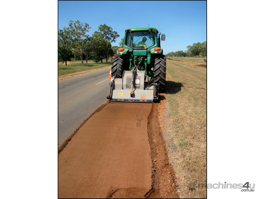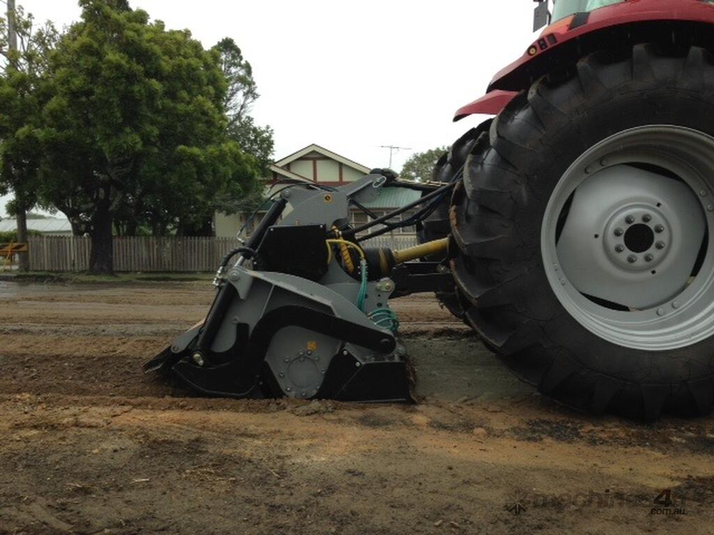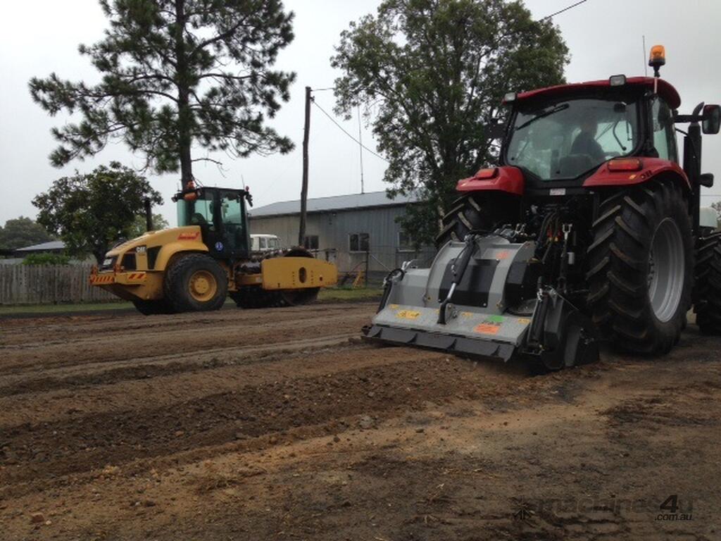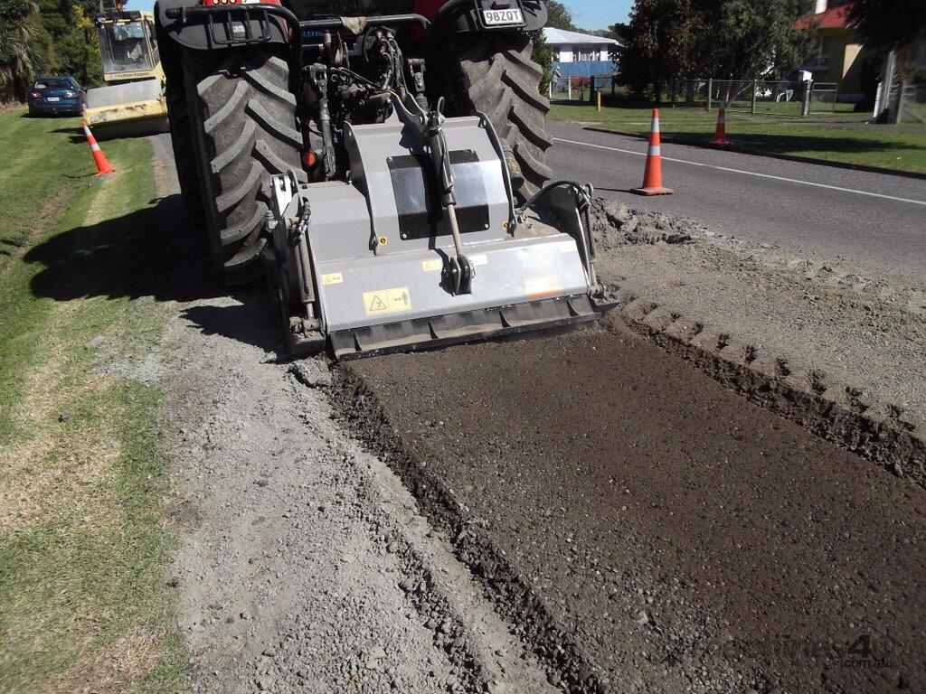 RSL & RSL/DT (from 1.5 m to 2.25 m cut) PTO driven Fixed Hammer Rock Crusher/Road Recycler/Rocky Reef Crusher with single or double transmission, extension shaft with double roller bearing, HP complete gearbox transmission. G and STC/FP tungsten hammers. Hardox breaker bars and bolt-on wear plates. Hydraulic rear door. Hydraulic skids for control of working depth. 3-point linkage attachment and hoses, gearbox with free wheel, PTO shaft with clutch, Hydraulic top link. Working depth up to 270 mm.