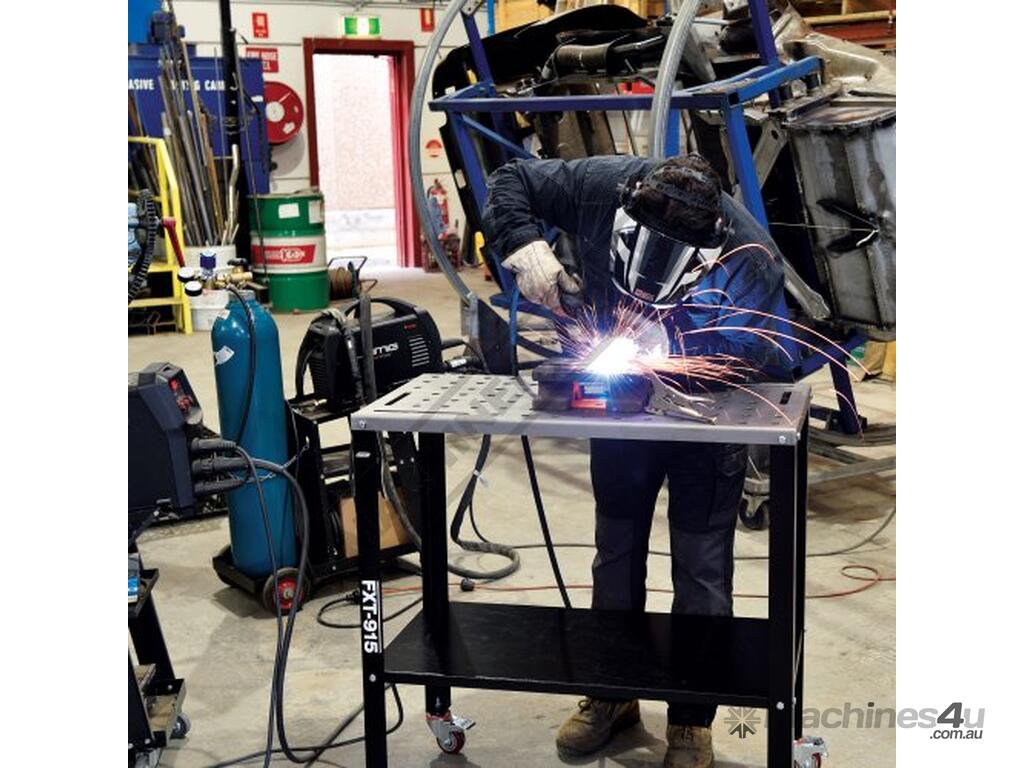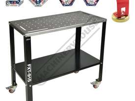 The FXT-915 Fixture Table is a versatile solution for any home workshop. The table is designed with a solid 3mm steel top complete with 16mm holes to accommodate welding table clamps or jigs for easy set-up for welding, grinding or as a mobile work surface, whilst the steel lower shelf gives you convenient storage for your welder or other tools. The table features heavy 50 x 50 x 4mm angle steel legs giving it a large 500kg load capacity along with heavy duty swivel castors allow for easy mobility so when you have completed your job and need the floorspace, unlock the casters and simply move the table away!