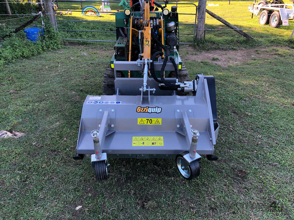 The Ozziquip ZVFL105 Hydraulic Flail mower is suited to a range of mini loaders. Quick hitch system complete with hoses and hydraulic fittings turn your loader into a versatile mower.