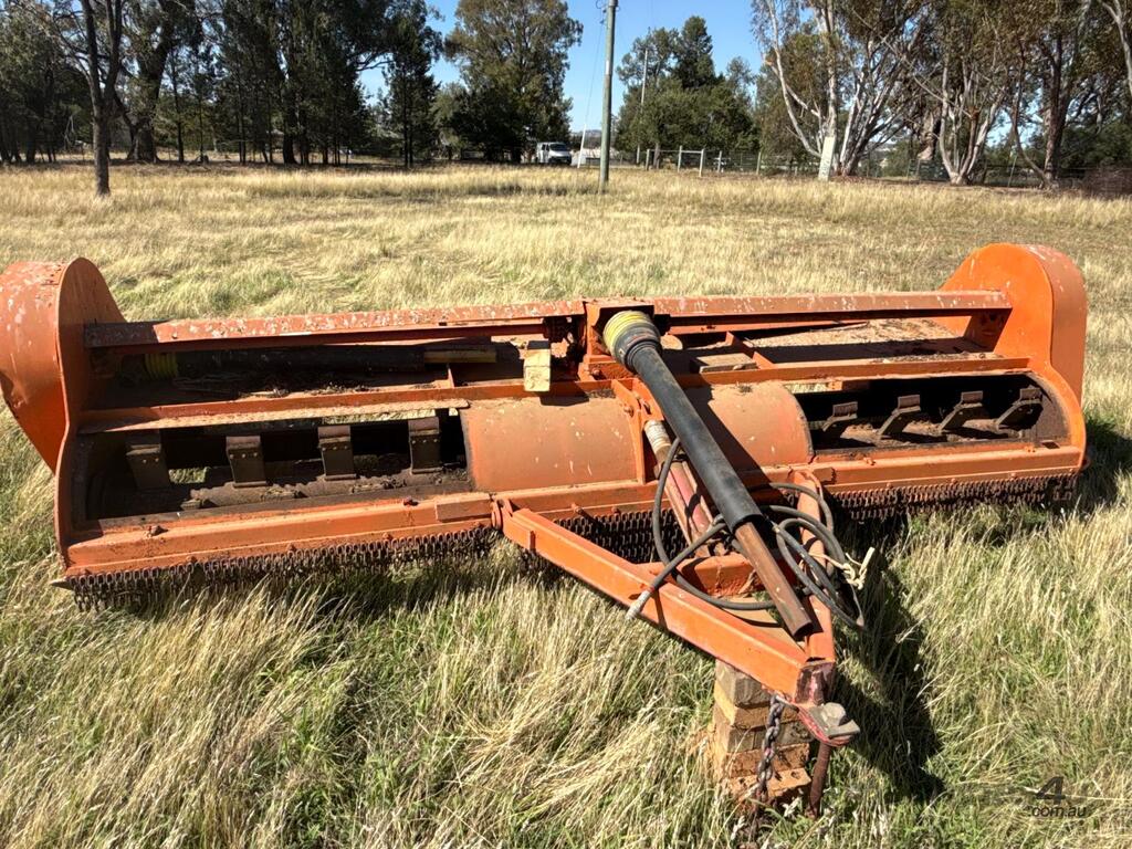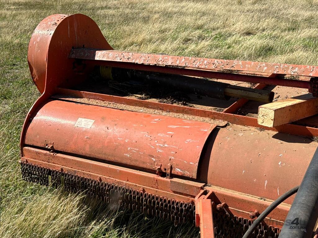 Flail Mower. 3.5 m wide. Requires attention to bring back to its former glory. Machine appears to be quite straight appart from one crack at front of machine (refer photo). Machine can be towed but also can be lifted onto truck if required. Fair condition for its age.