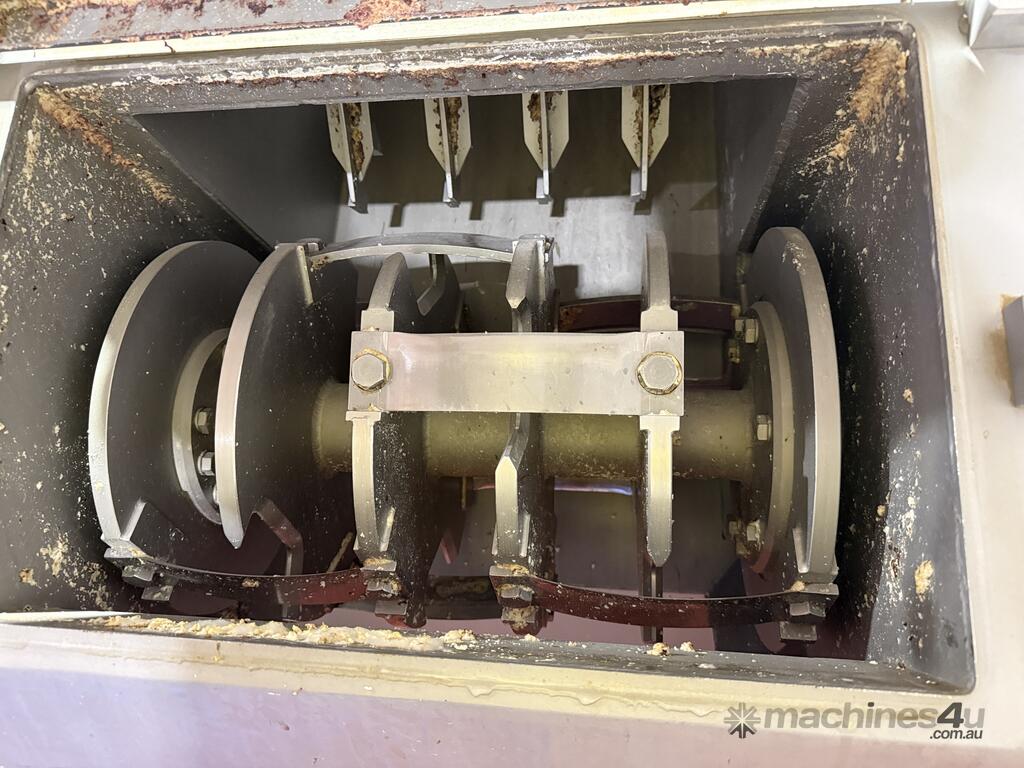 KOMPO Frozen Meat/Food Block Flaker IB 4. The design of the cutter shaft is patented and unique, allowing for the use of KOMPO flakers with various products (including meat, chocolate, butter, etc.). The frozen block flaker IB-4 has the fastest operating cycle (3 seconds to cut a block at -18 C/ -0,4 F, 24 kg). IB 4 chops 7000 kg an hour. Each block is “cut” rather than crushed in order to preserve product texture.