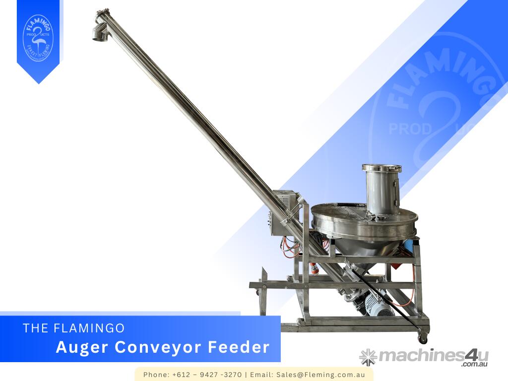 The Flamingo Auger Conveyor Feeder comes with our Easy Clean Design - Auger Transfer Conveyors assist you to automate the filling and topping-up process by elevating in bulk powder and granule product, reducing them into a controlled stream, and automatically feeding them into an existing filler.