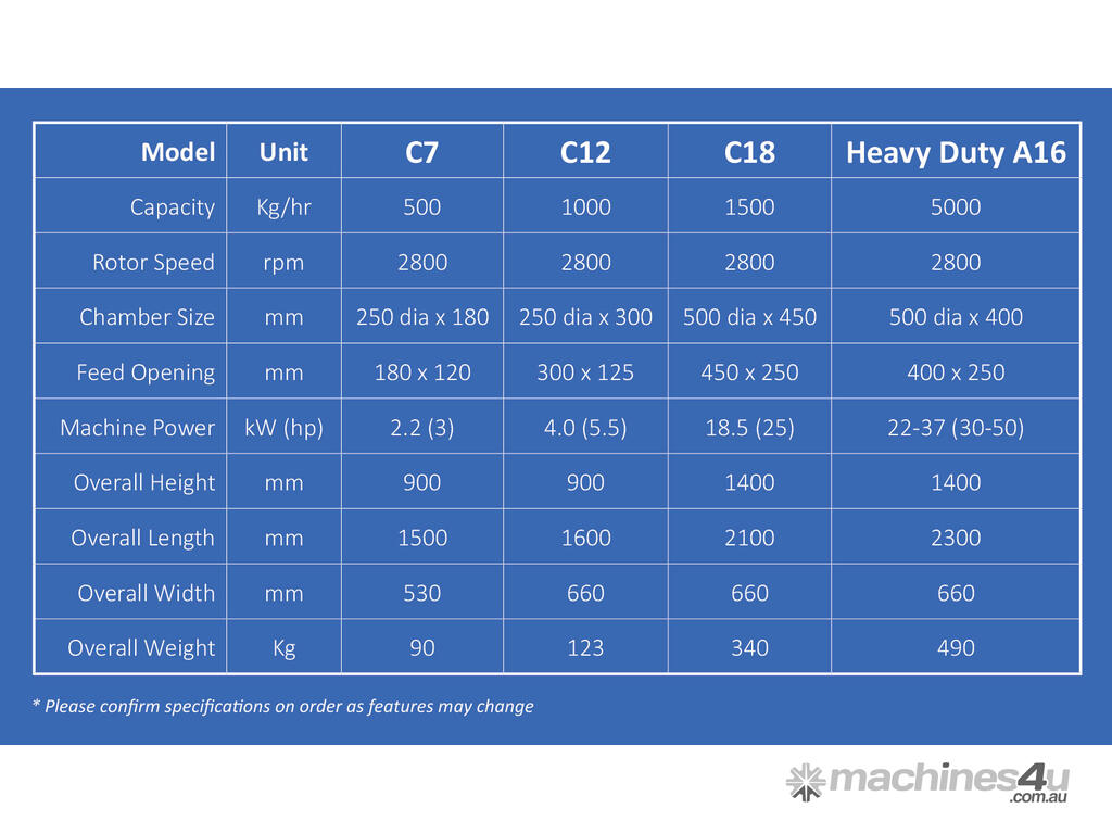 • Safety First: Fitted with a Work Cover approved safety switch, ensuring safe operation in your facility.