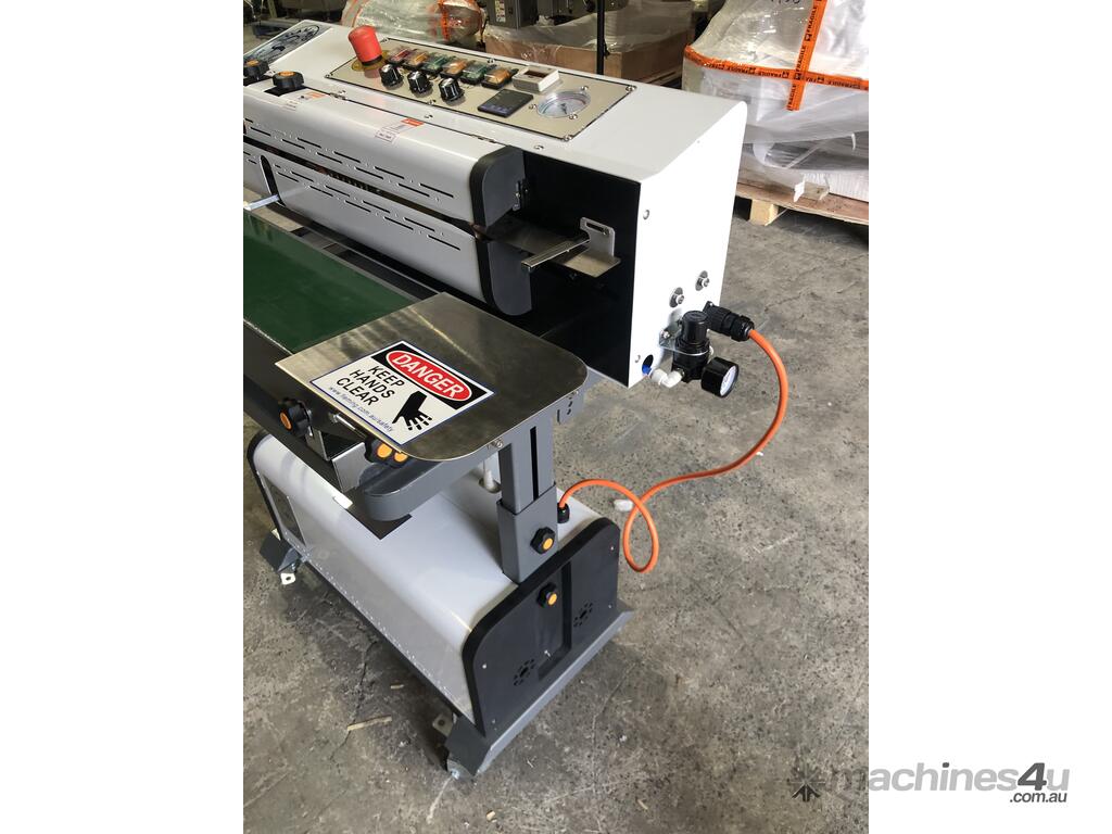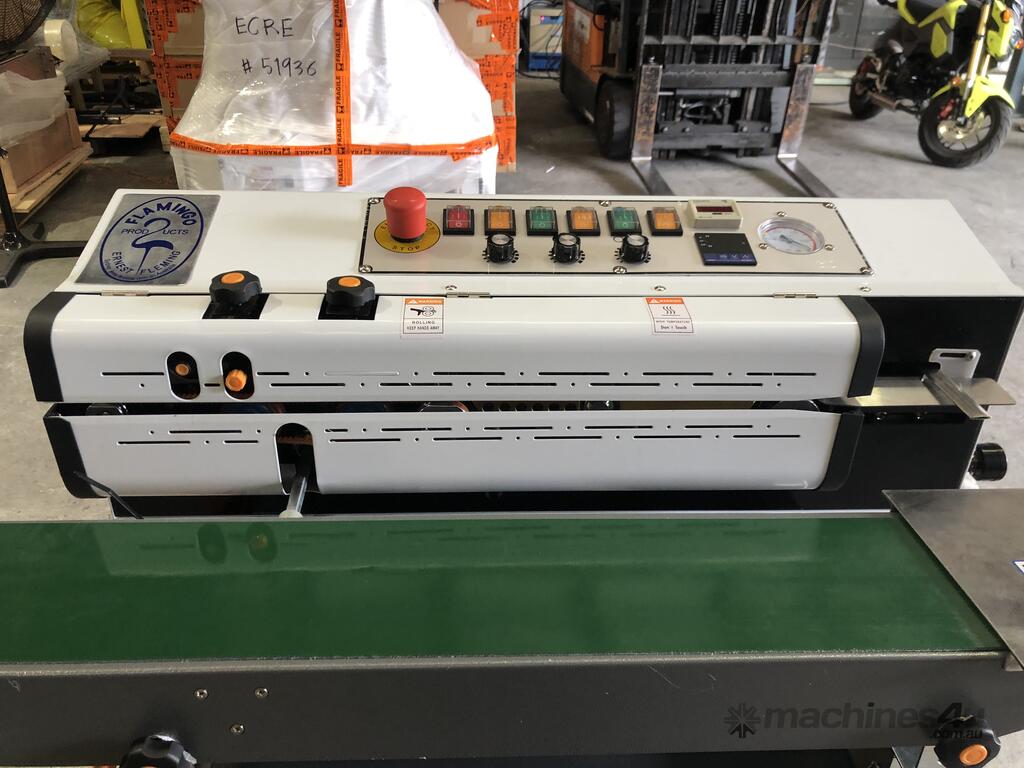 Flamingo Vacuum Continuous Sealer is a horizontal heat sealer with conveyor and complete with an Ink Roll Printer. They have the capability of vacuum and gas flushing the bag.
