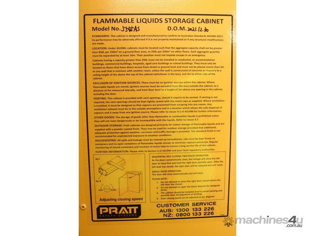 Flammable Liquid Storage Cabinet, "PRATT" model Flammable Liquid 3, capacity 250L, external dimensions (H x W x D): 1825mm x 1100mm x 500mm, double self-closing door, with lock & keys, 2 shelves, internal dimensions (H x W x D): 1550mm x 1000 x 460mm
