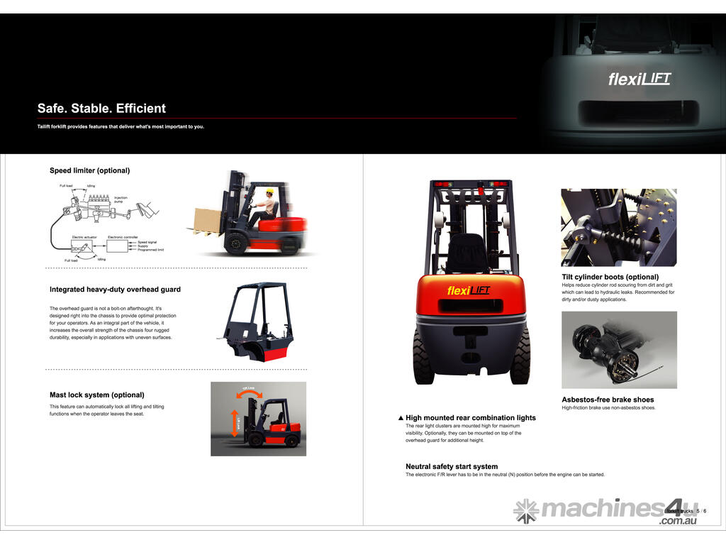 Mast Options: 2-Stage Clearview (up to 6m), 3-Stage Container Entry (up to 4.8m)