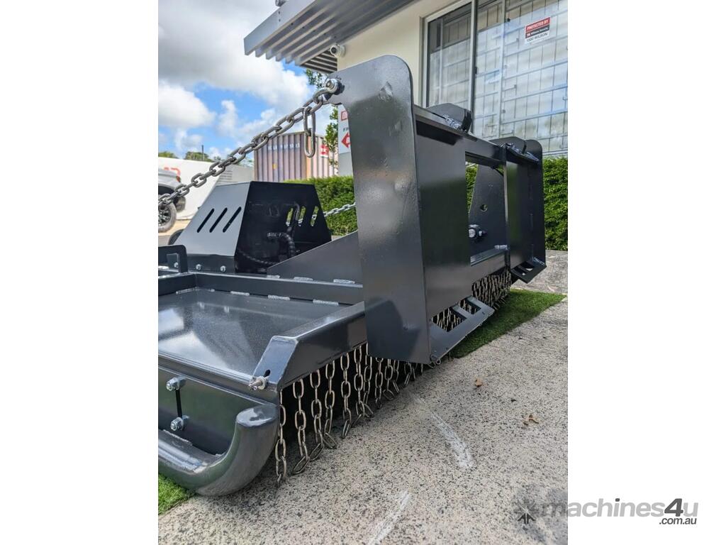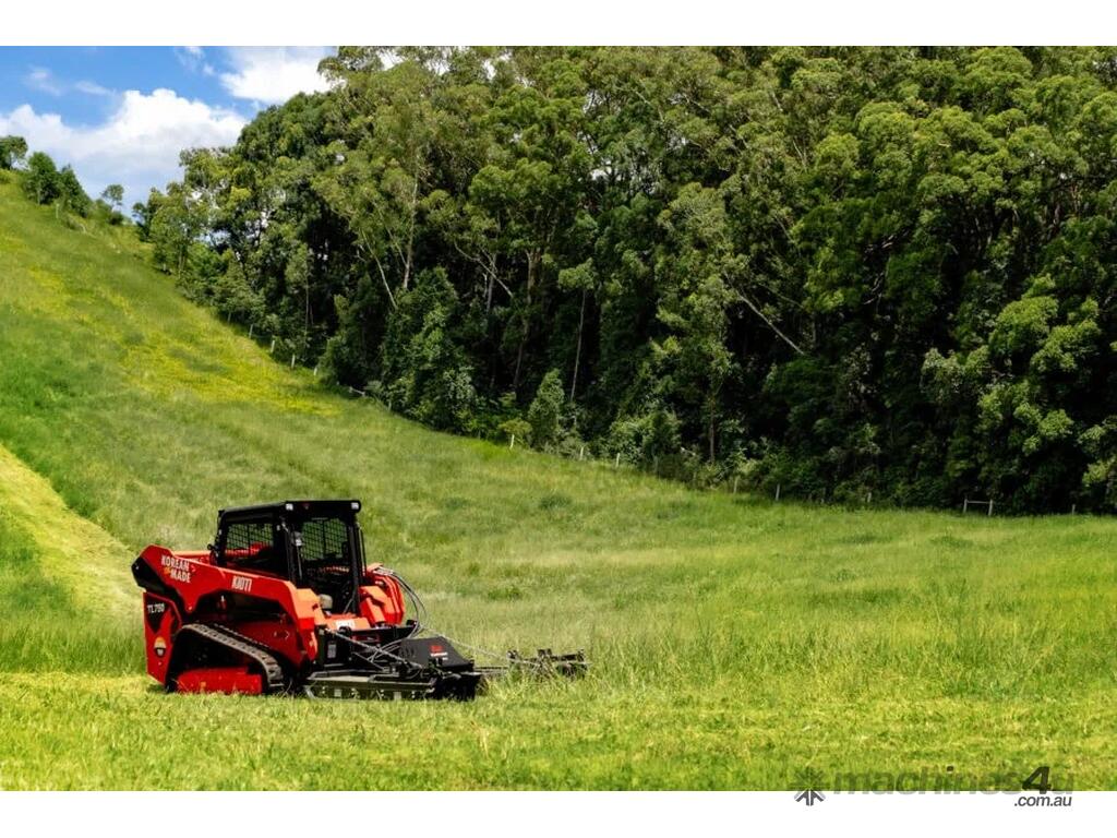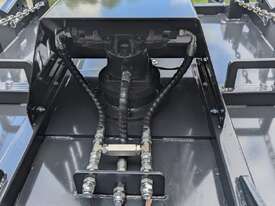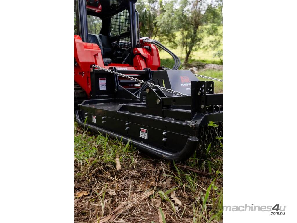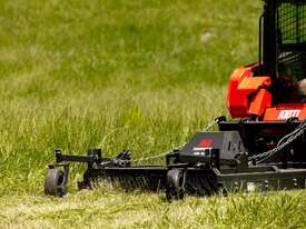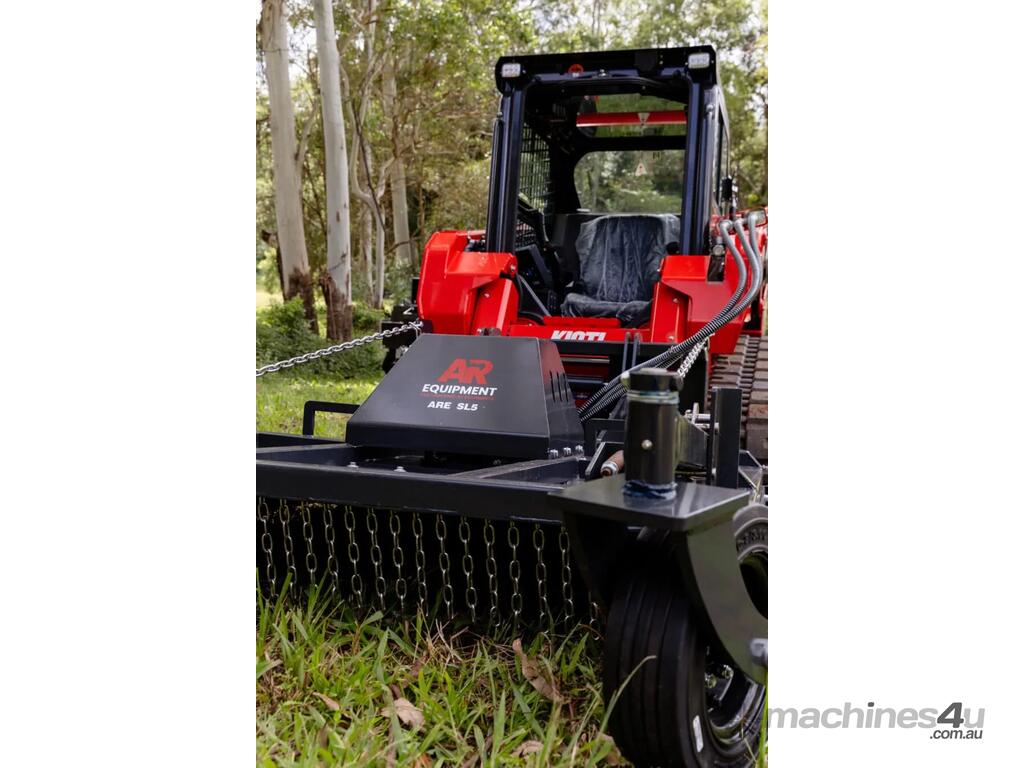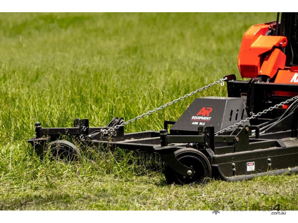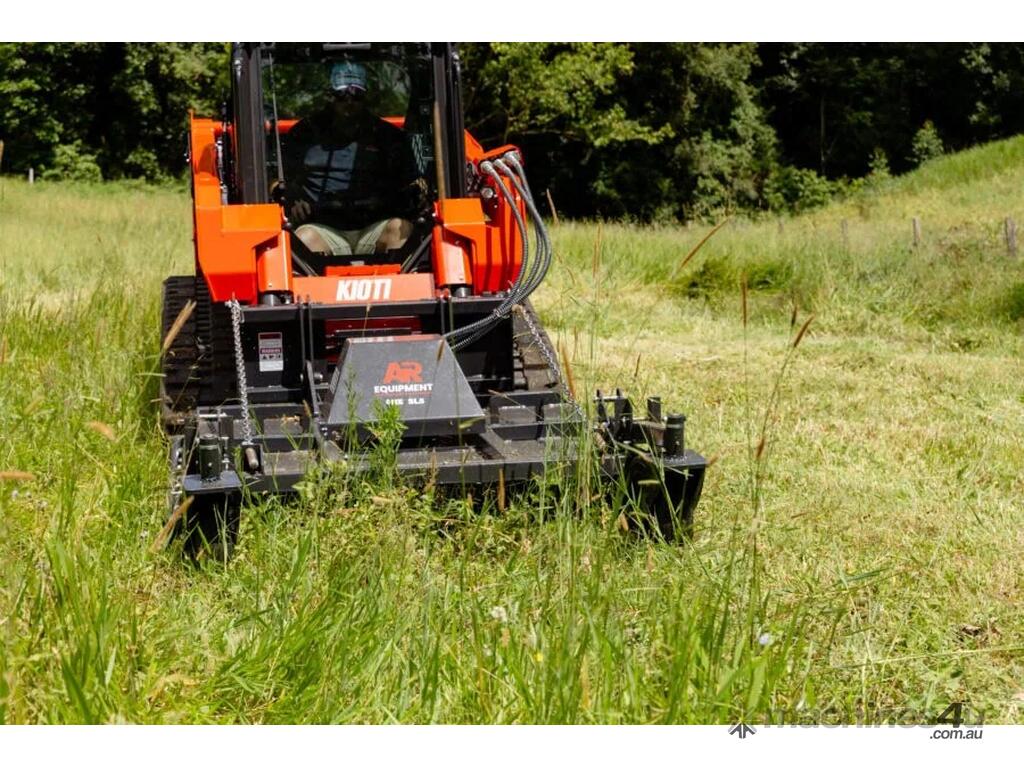 The AR Equipment Skid Steer Slasher is engineered for superior performance with a high torque bent piston motor, offering 30% more torque than conventional gear motors. The twin jockey wheel floating deck gives superior production in paddock work, 2-3 times more productive than fixed head or non floating deck slashers. Built for durability and ease of use, it features swing-away jockey wheels for maneuverability, twin wheels for easy turning, and tube skids to glide over obstacles.