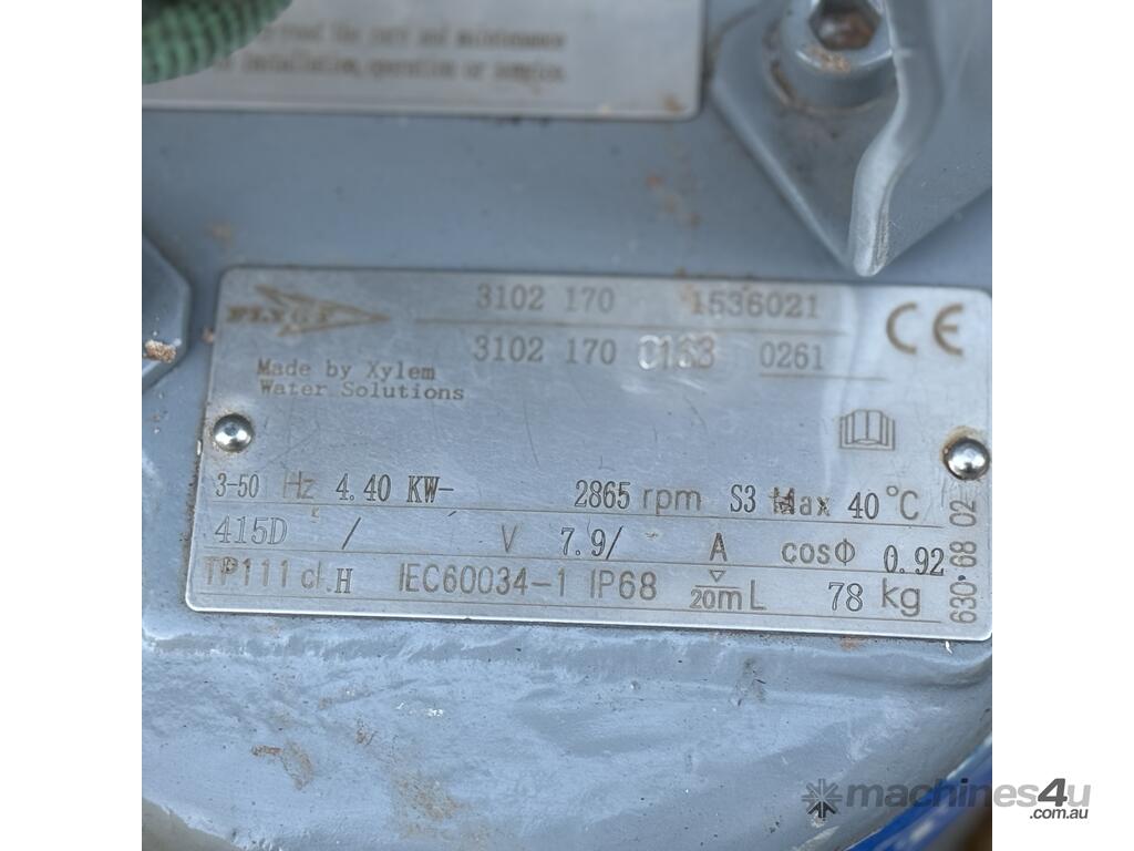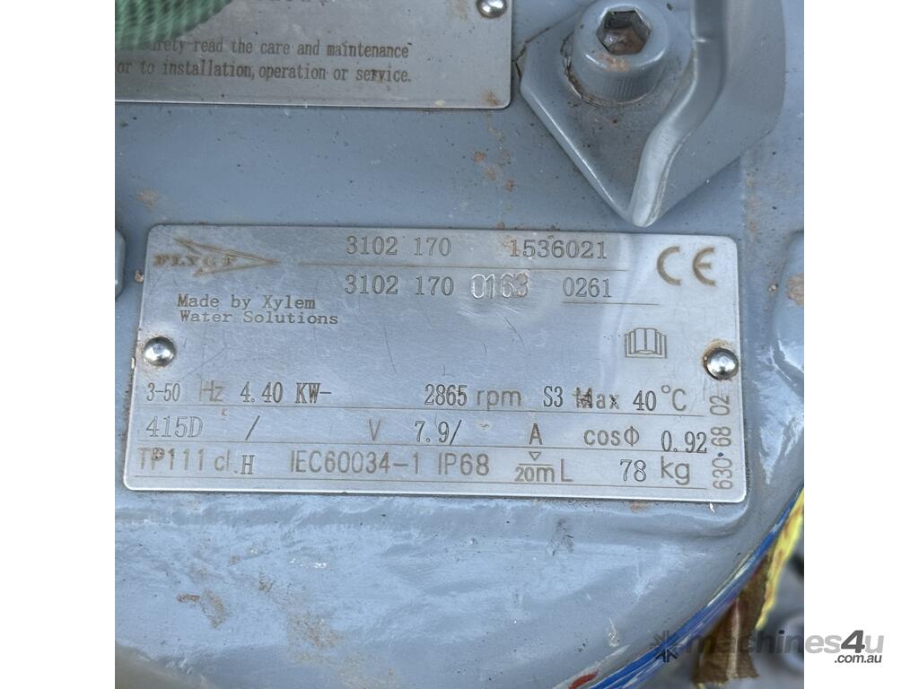Flygt / Xylem submersible pump, model 3102 170, 3 phase 415V, 4.40kW, 50Hz, 2865rpm, IP68,