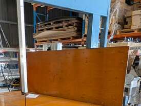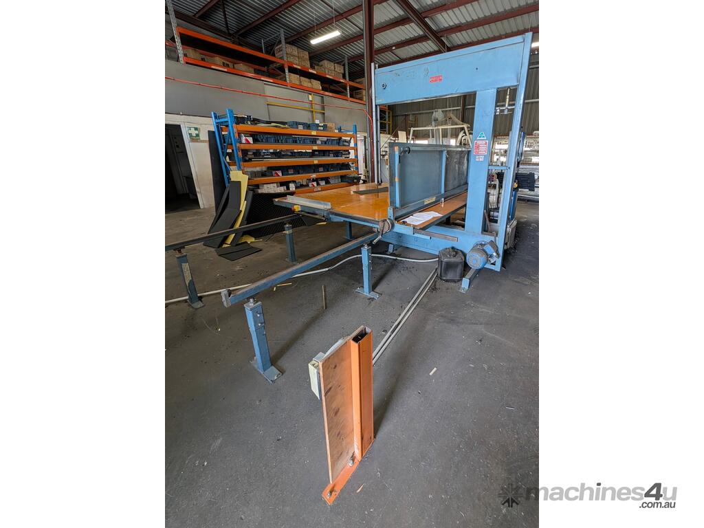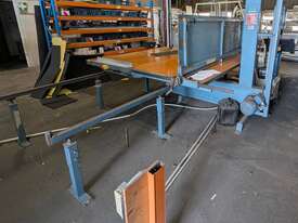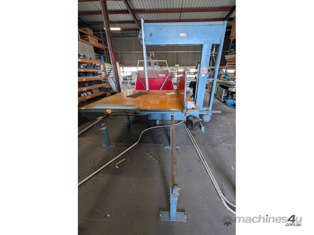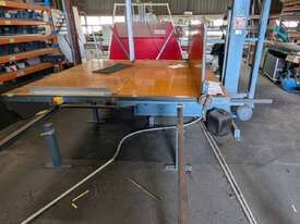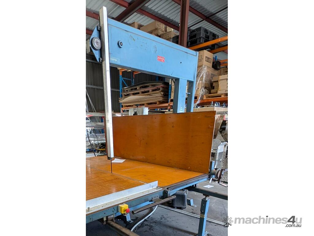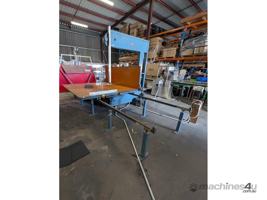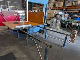 Huge Sliding table FOAM CUTTING bandsaw (or convert to sheet metal or plastic sheet cutting with cheap blades available from Melbourne or China). Table overall approx 2440 x 2440 with 1220mm right side/fence cutting. Adjustable height, stack sheets on top of each other and adjust height (to maintain appropriate blade tension). Great condition, 3ph-20a with bandsaw motor and lifter motor. Breaks down for transporting.