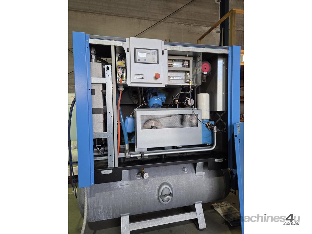 7). BOGE C-22-2 DR-500 22kw 30hp 415v 7.5 BAR 128.5CFM 3-IN-1 ROTARY SCREW COMPRESSOR Year 2022 MADE IN GERMANY INCLUDING BUILT-IN REFRIGERATED AIR DRYER 240v/FILTERS MOUNTED ON 500 LITRE GALVANISED AIR RECEIVER TANK, SUPER QUIET, HEAVY DUTY, GENUINE LOW RUN HOURS. VIRTUALLY ‘NEW’ CONDITION.