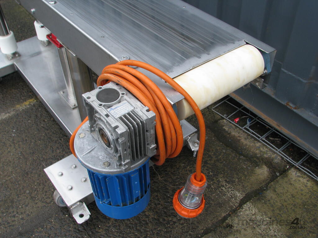 It doesn't have a belt at the moment but it will be fitted with a 200mm wide food grade belt upon sale.