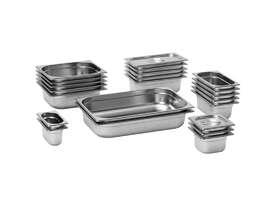 Food Tek 1/4 x 150 mm Gastronorm Pan AUSTRALIAN STYLE - 14150 Key Features HEAVY DUTY ALL STAINLESS STEEL 0.6 mm Patented stackable and nestable design Fine, smooth finish Double rim for strength & rigidity Depth: 265 mm | Width: 162 mm | Height: 150 mm | Price: $21 | Manufacturer: Food Tek